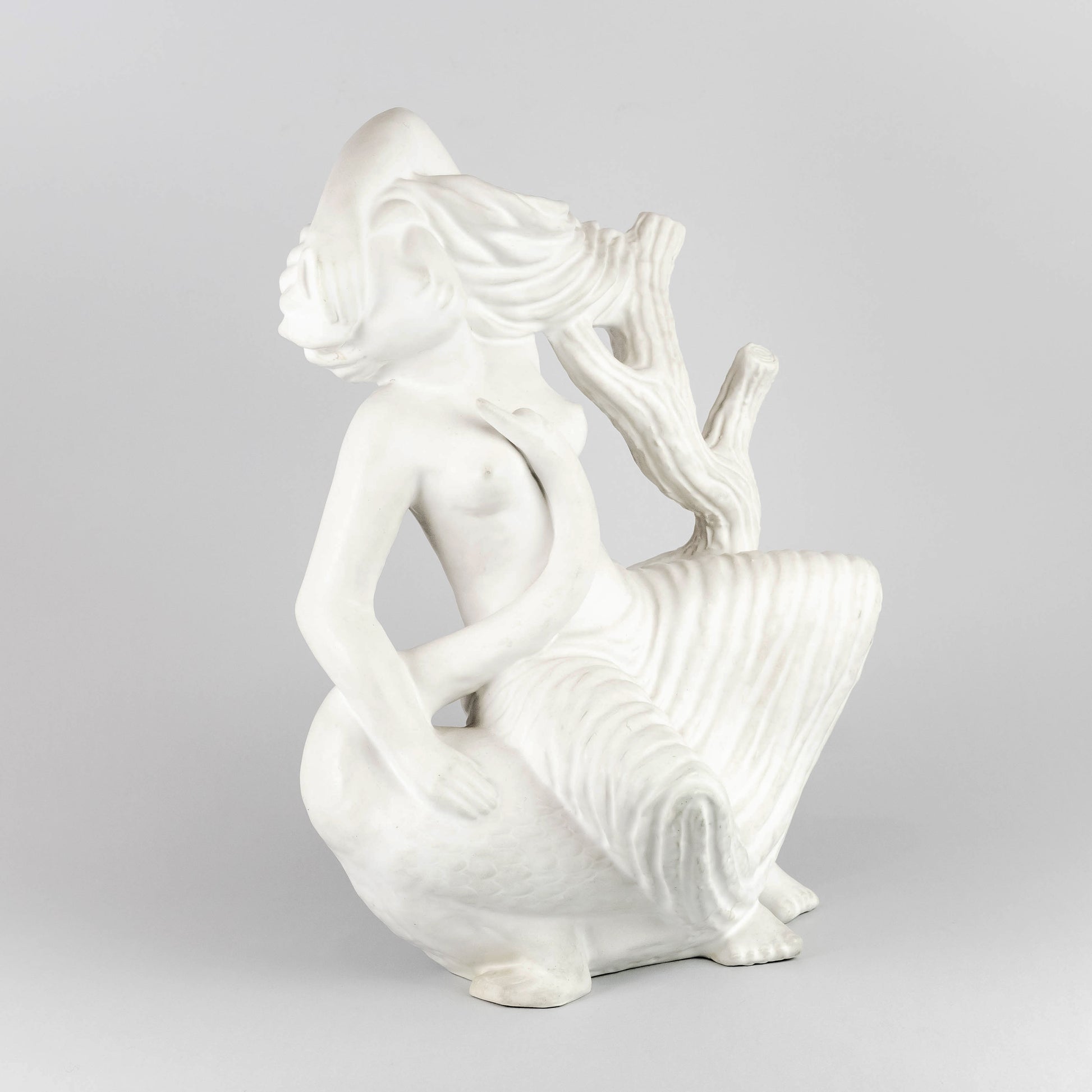 Stig Lindberg skulptur i stengods Leda och Svanen för Gustavsberg, 1940-tal. Lagning. H: 34cm, B: 27cm. Signerad Stig L Gustavsberg.
