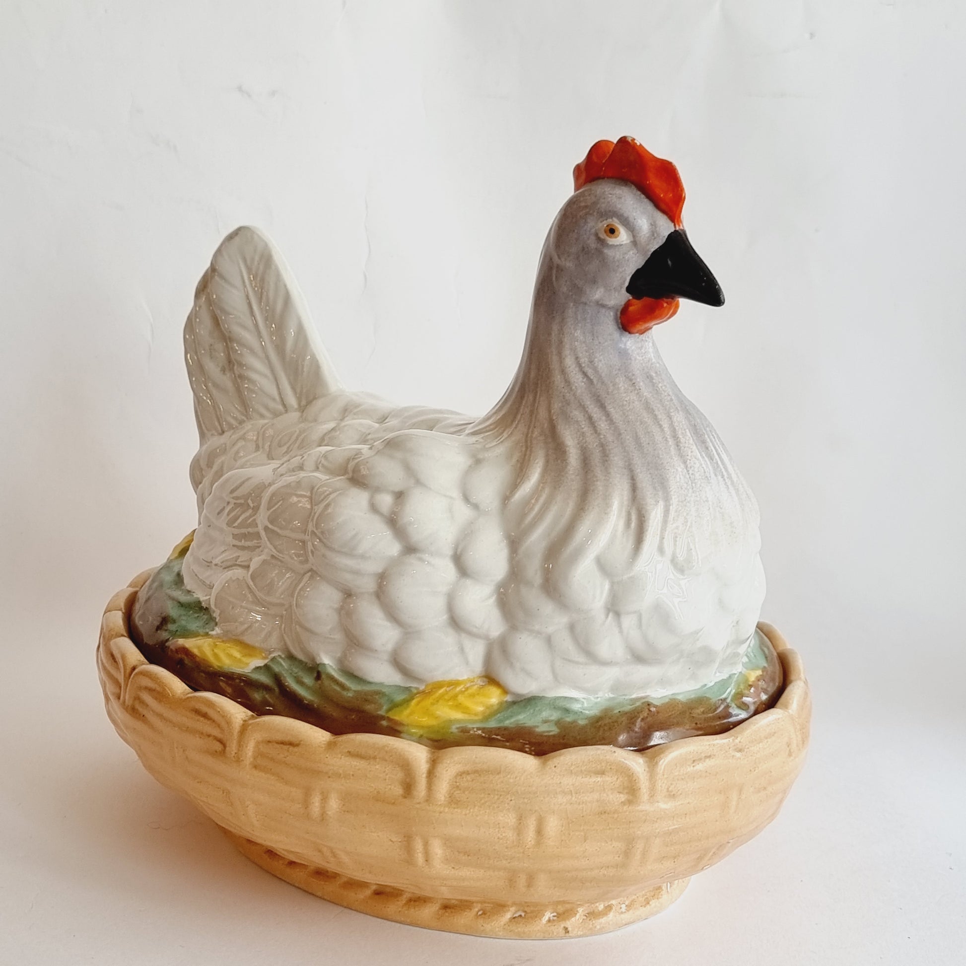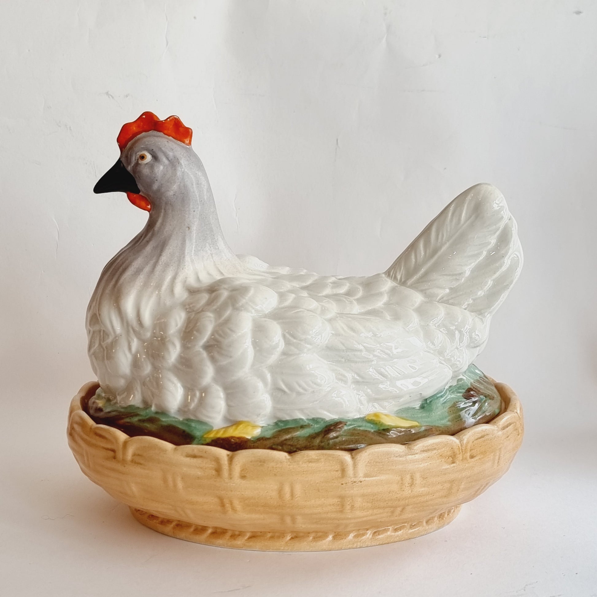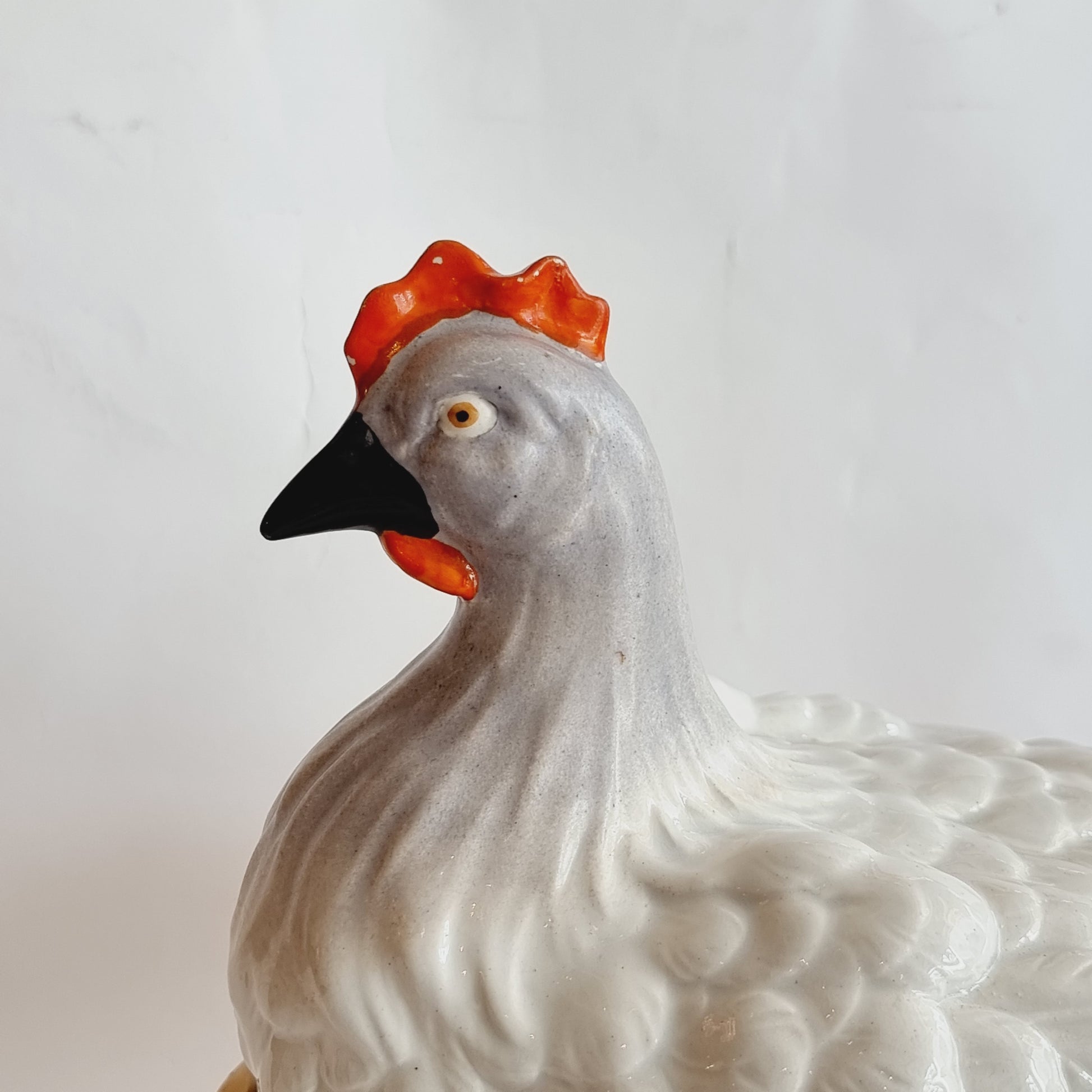 Easter porcelain egg basket shaped like a hen. Early 20th century. H: 21cm/8.27", L: 24.5cm/9.65".