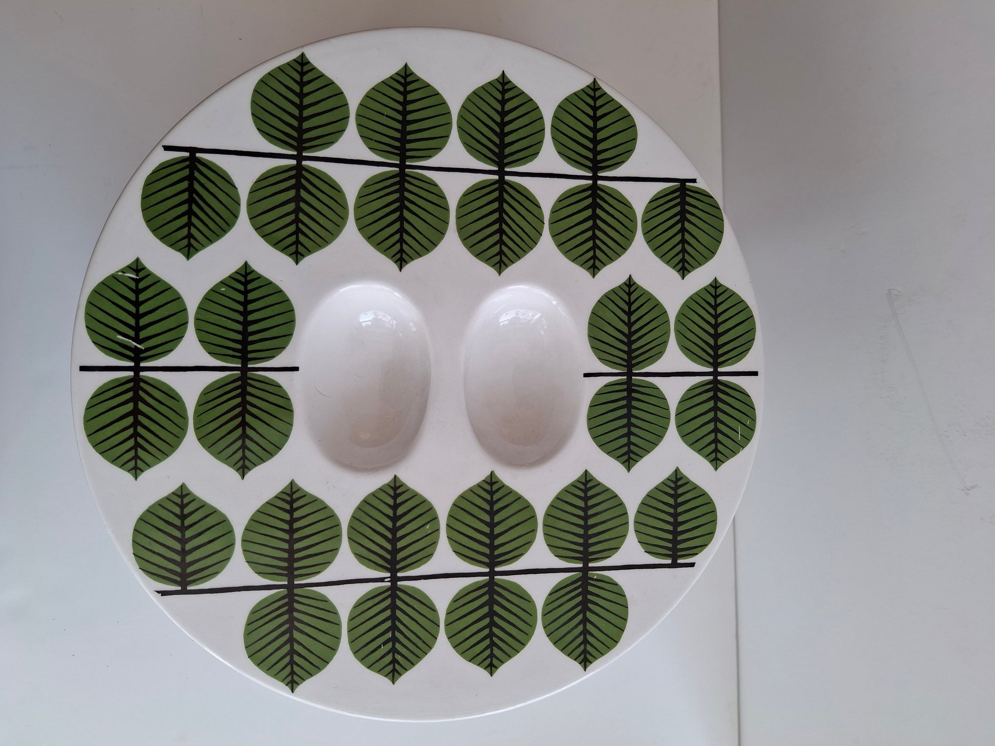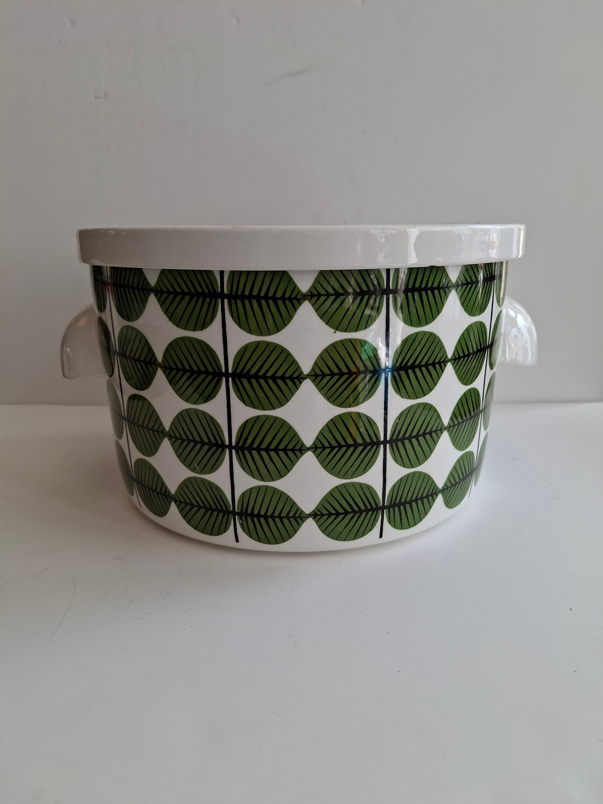 Carrot with lid in the Berså series by Stig Lindberg for Gustavsberg. H: 13cm and diameter including handle 24cm. Year of manufacture 1960-1974. Scratches on the underside of the lid and age-related wear.