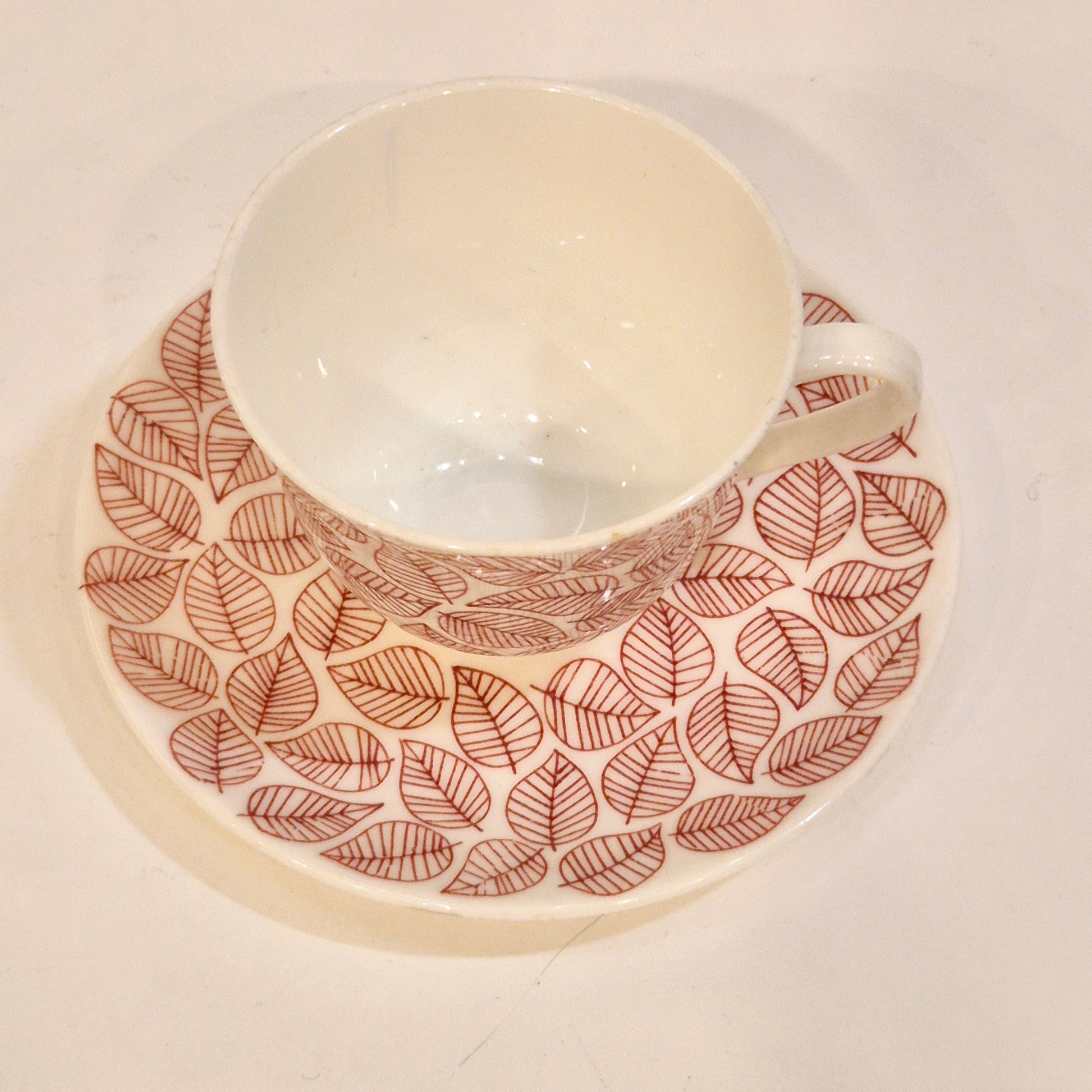 Kaffekopp Betula av Stig Lindberg för Gustavsberg. Tillverkningsår 1961. Åldersrelaterat slitage.