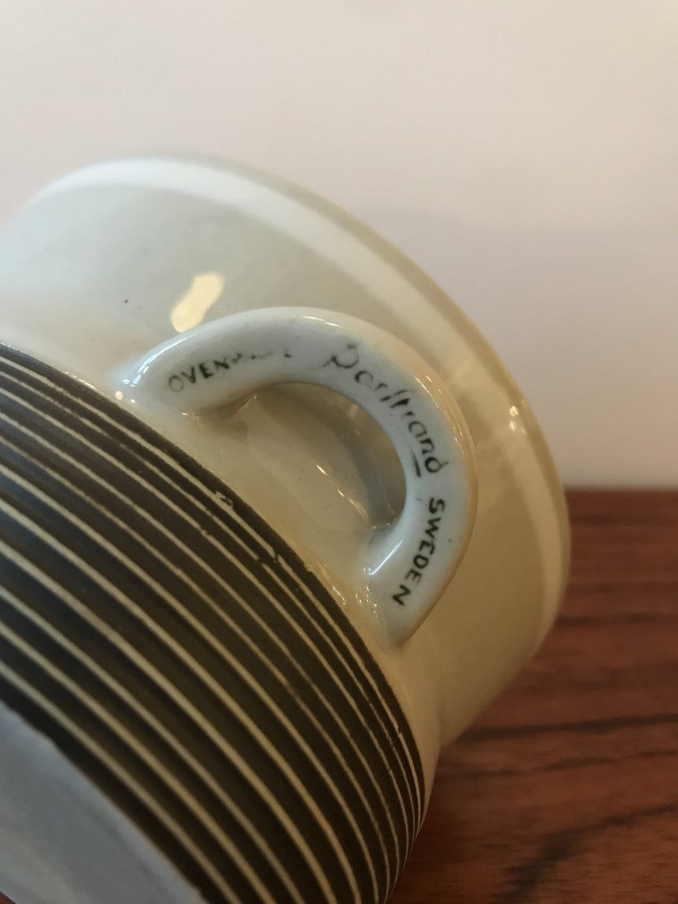 Entrance jar with lid by Carl-Harry Stålhane for Rörstrand. Production years 1957-1960. 9cm /3.5"cm x 12cm/4.7 ". Ware consistent with age and use.