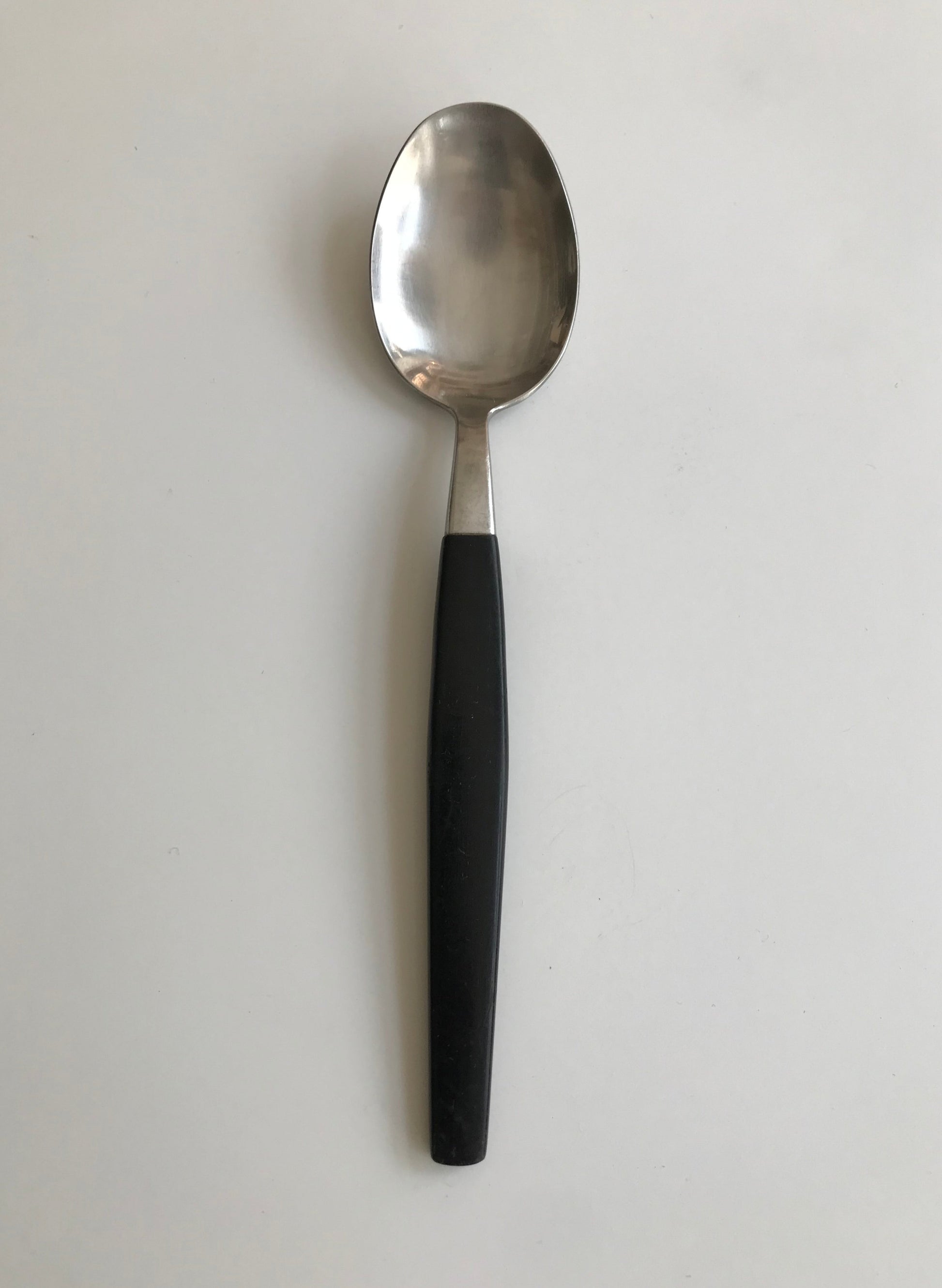 Dessert spoon in the Singoalla series by Adam Thylstrup for Nils Johan , 1960s. In plastic and stainless 18-8 steel.