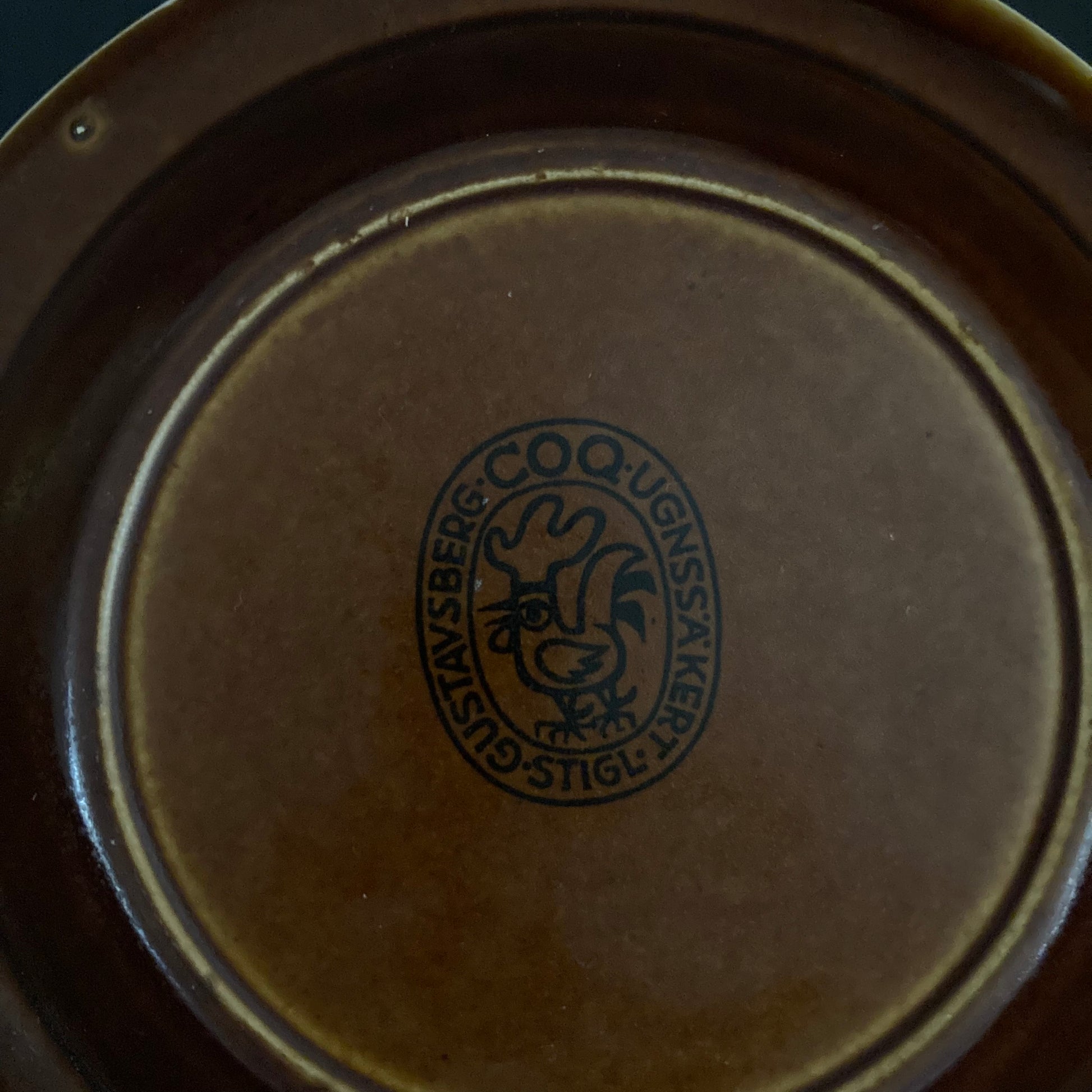 Deep plate Coq by Stig Lindberg for Gustavsberg. Diameter 19.5 cm. Year of manufacture 1966-1985. Age-related wear and tear.