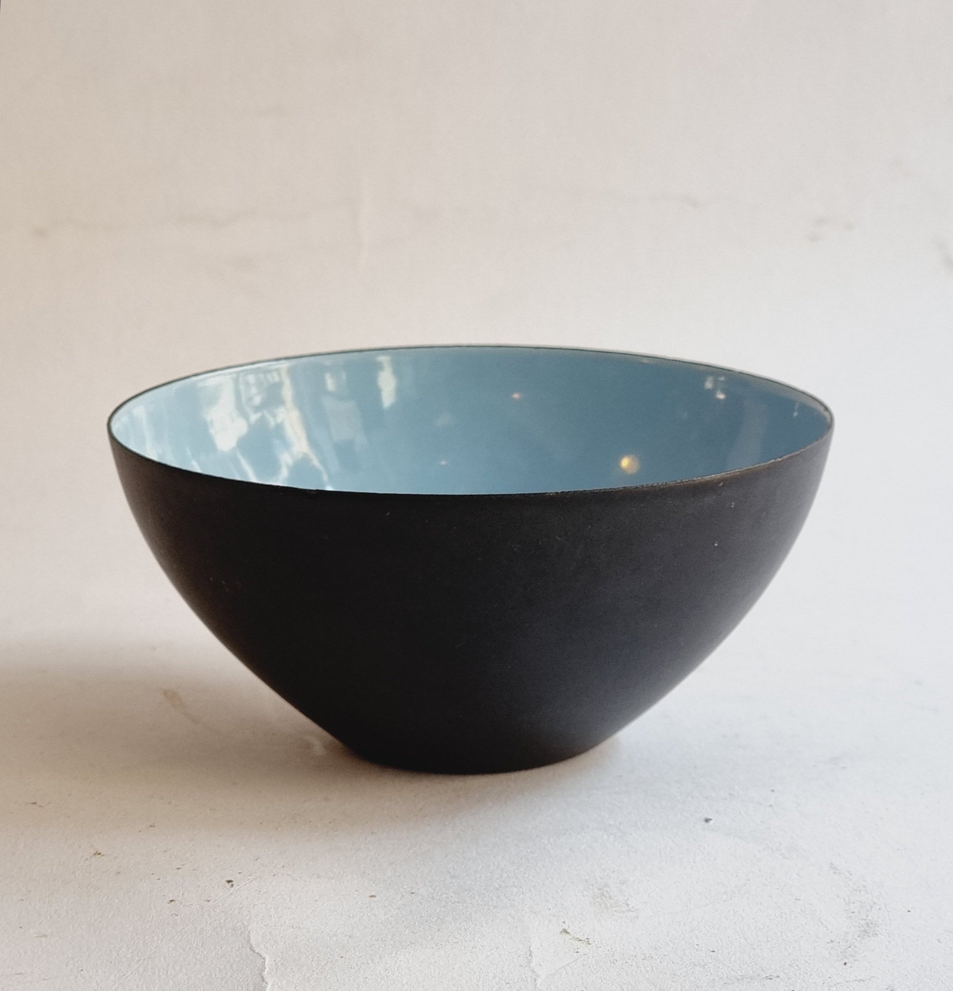 Krenit bowl in tin with enamelled interior by Herbert Krenchel for Ørskov & Co, 1950s. Height 6cm and diameter 12.5cm.