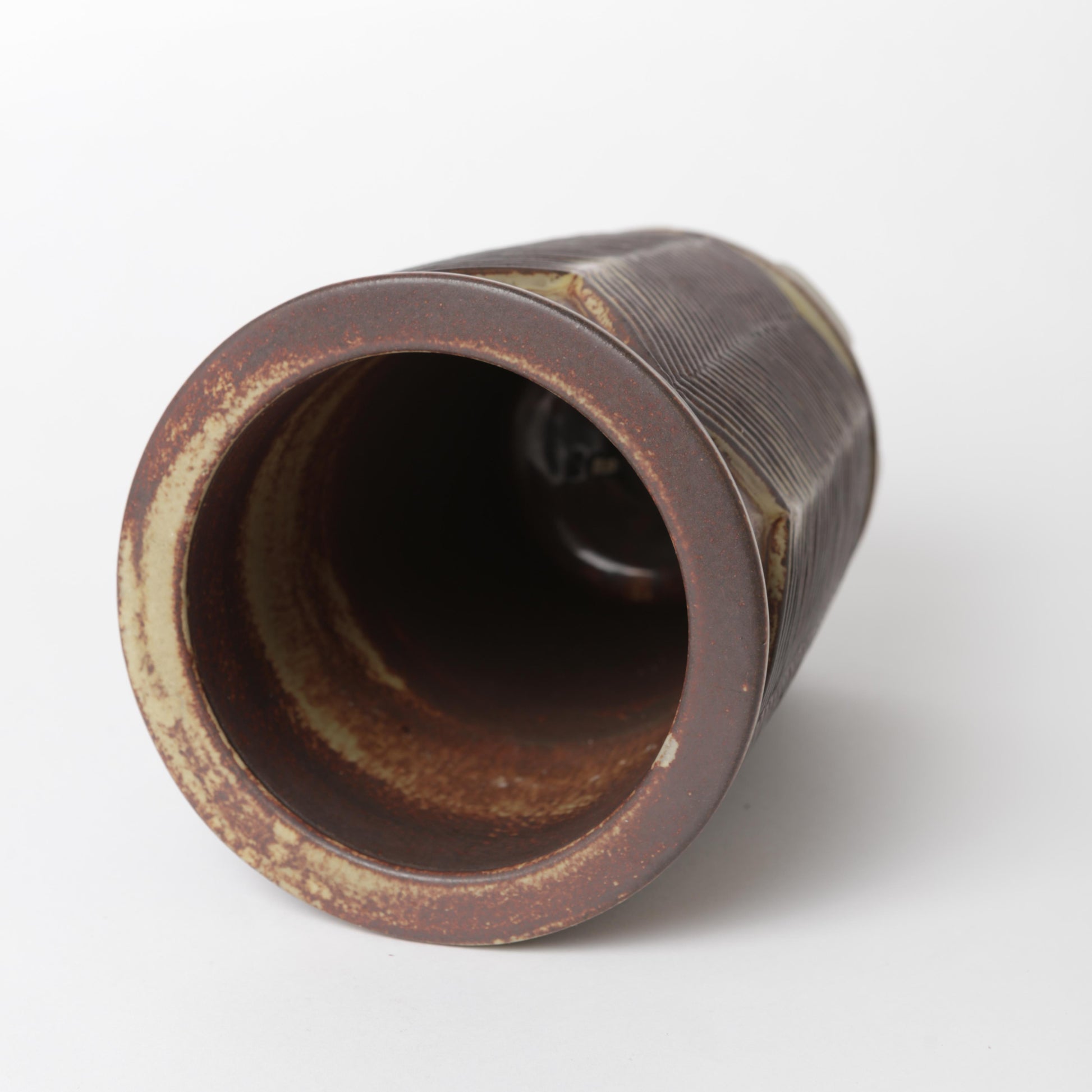 Farstavas in stoneware by Wilhelm Kåge in 1951 for Gustavsberg. Signed Kåge Farsta U and the studio hand. 19.5 cm high and diameter 14 cm..