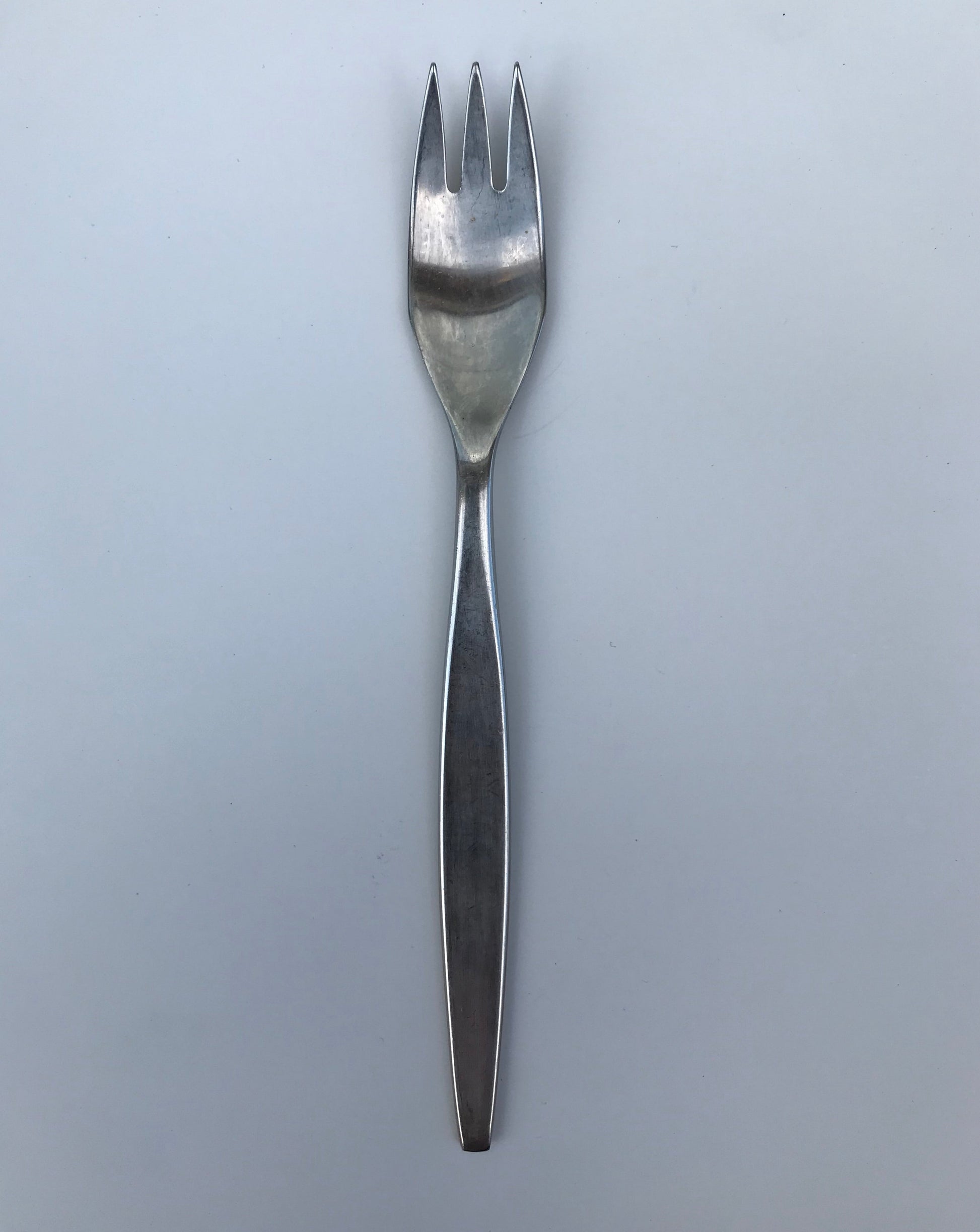Appetizer fork in the Focus Steel series by Folke Arström for Gense, 1950s. Completely in stainless 18-8 steel.