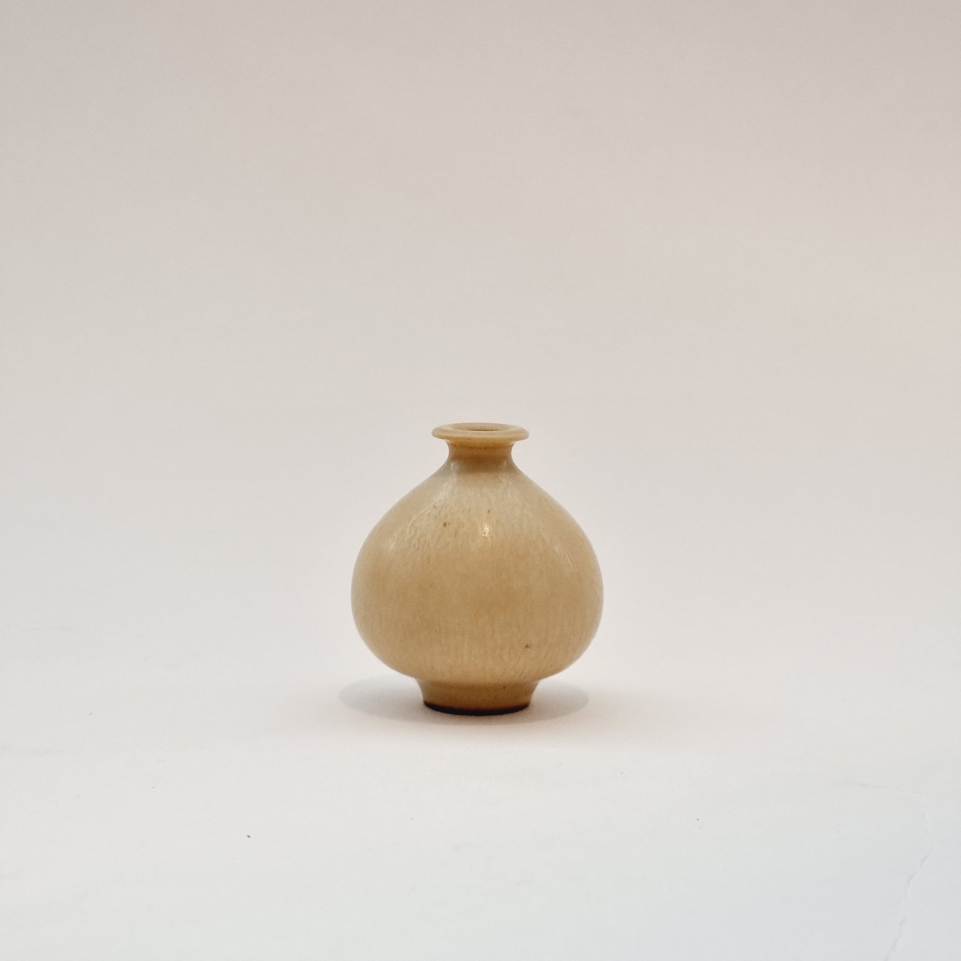 Stoneware vase by Berndt Friberg for Gustavsberg. Hare fur glaze. Signed Friberg and the Studio Hand Height 4cm/1.55″.