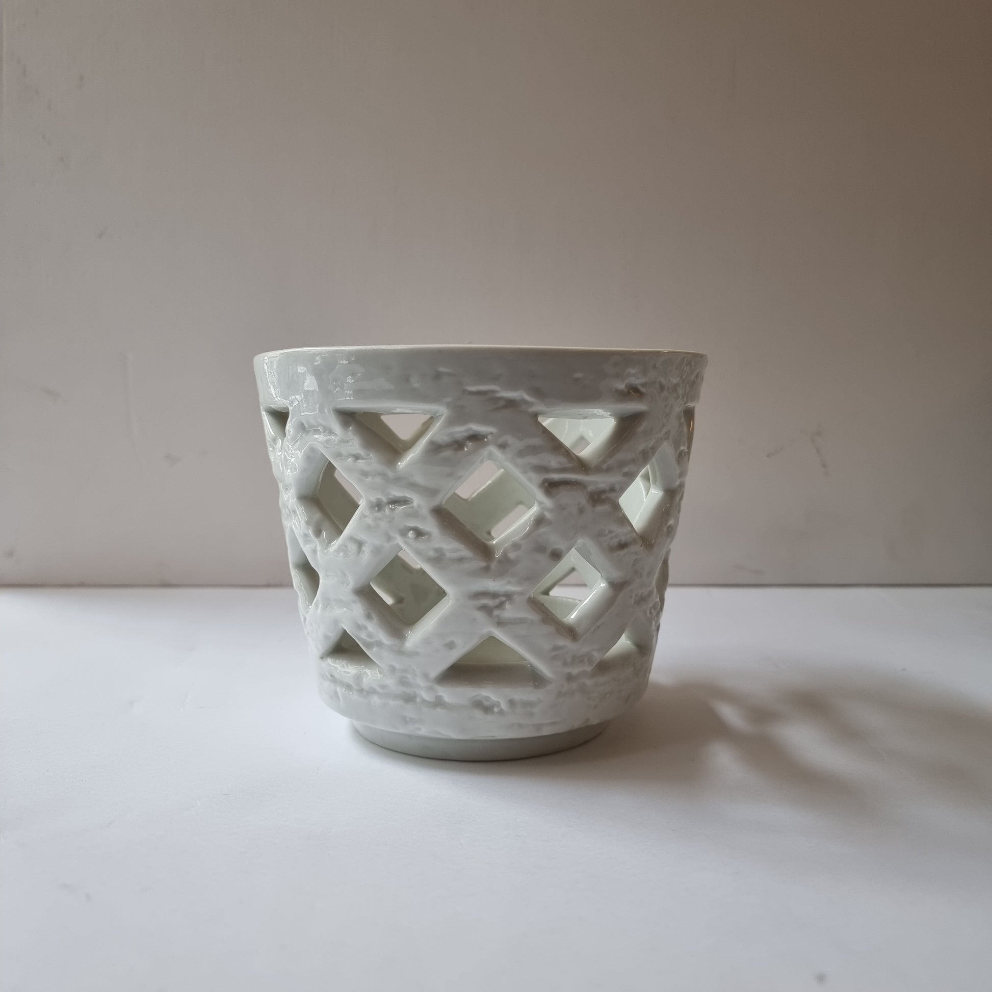 Flower pot lattice pot of Gunnar Nylund for Rörstrand. Height 15cm and diameter 15.5cm.