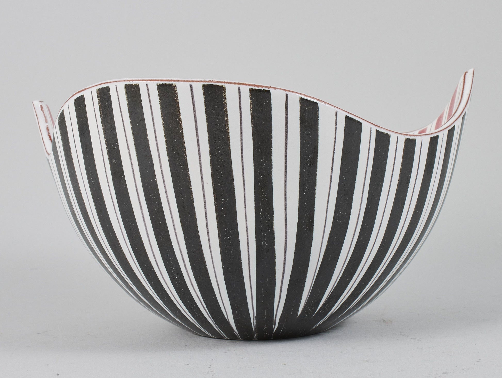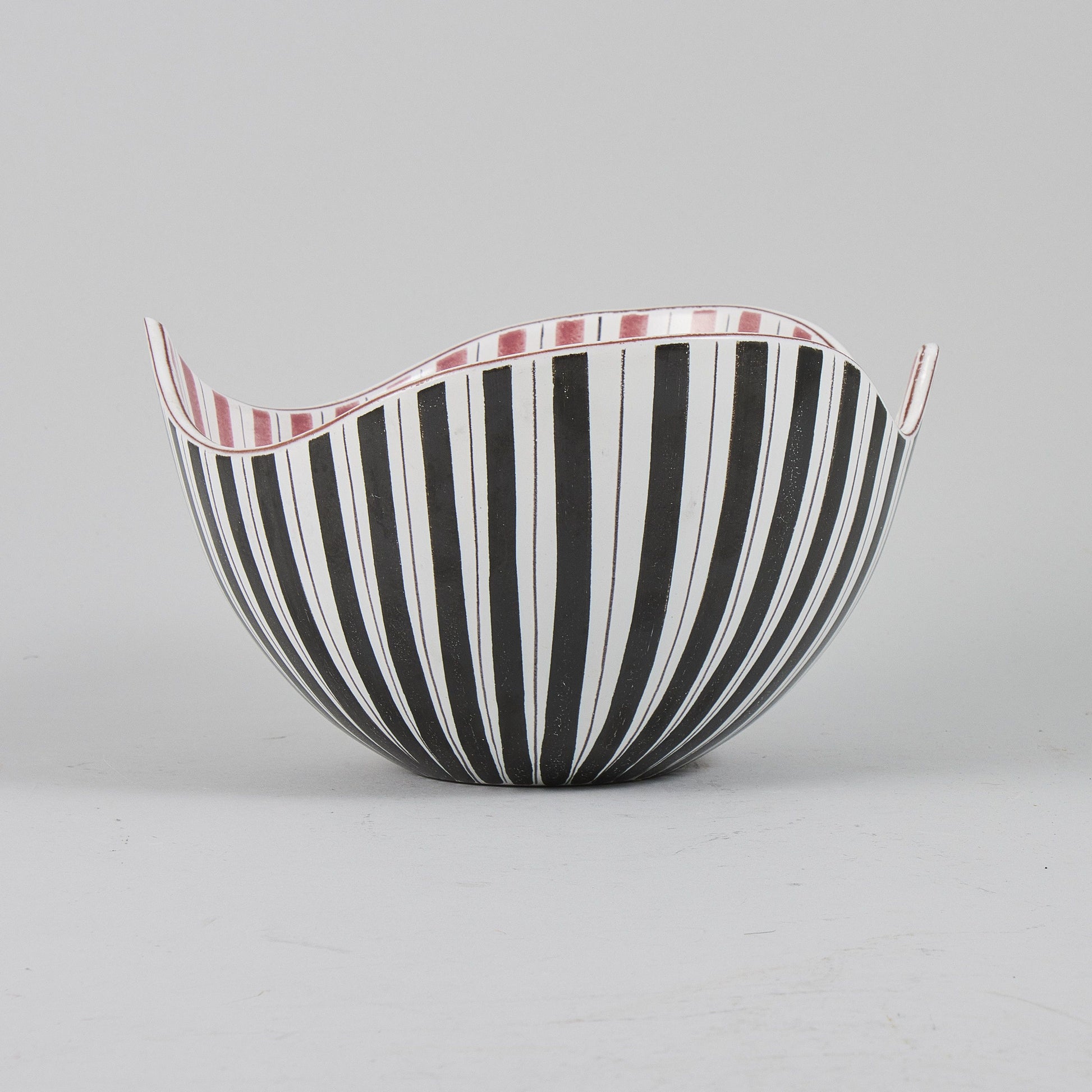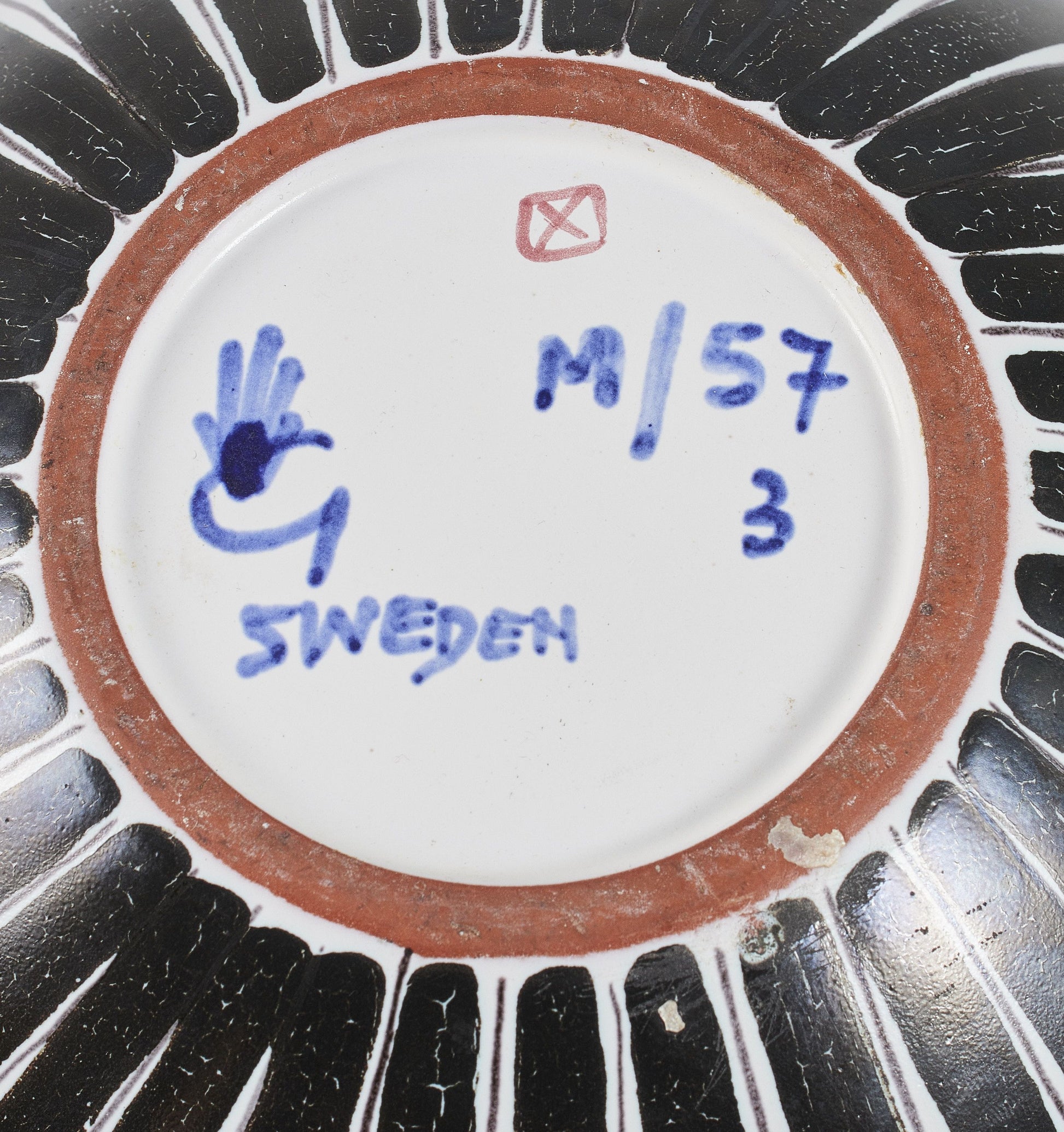 Stig Lindberg faience bowl, from Gustavsberg. H: 14cm and 24.5cm X 25cm. Signed with Studiohanden