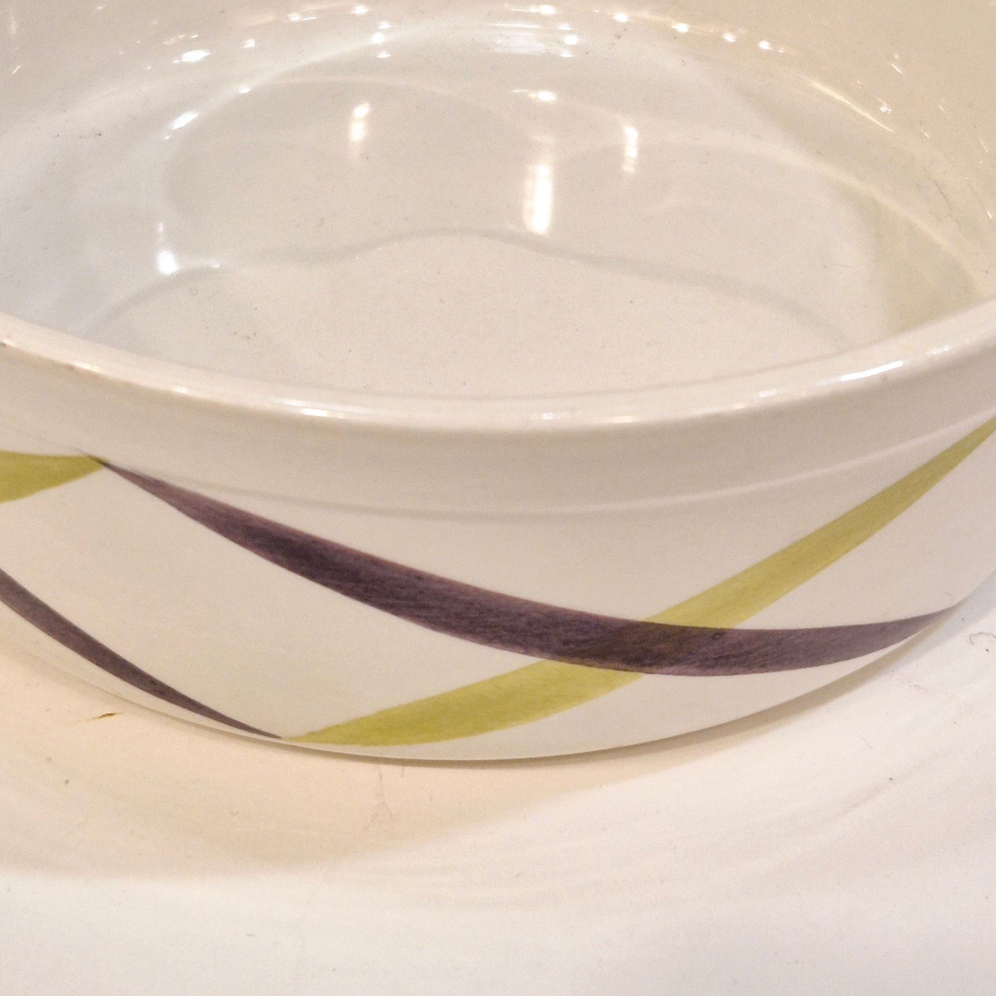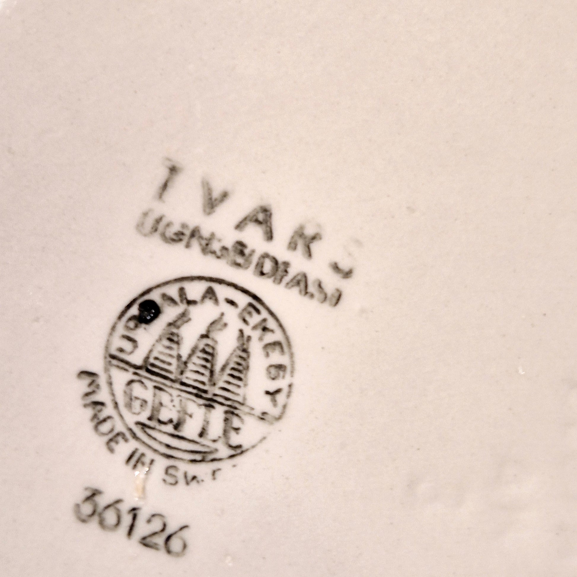 Skål Tvärs av Eugen Trost för Gefle Upsala-Ekeby, 1960-tal. Åldersrelaterat slitage. Höjd: 7 centimeter och diameter 18 centimeter.