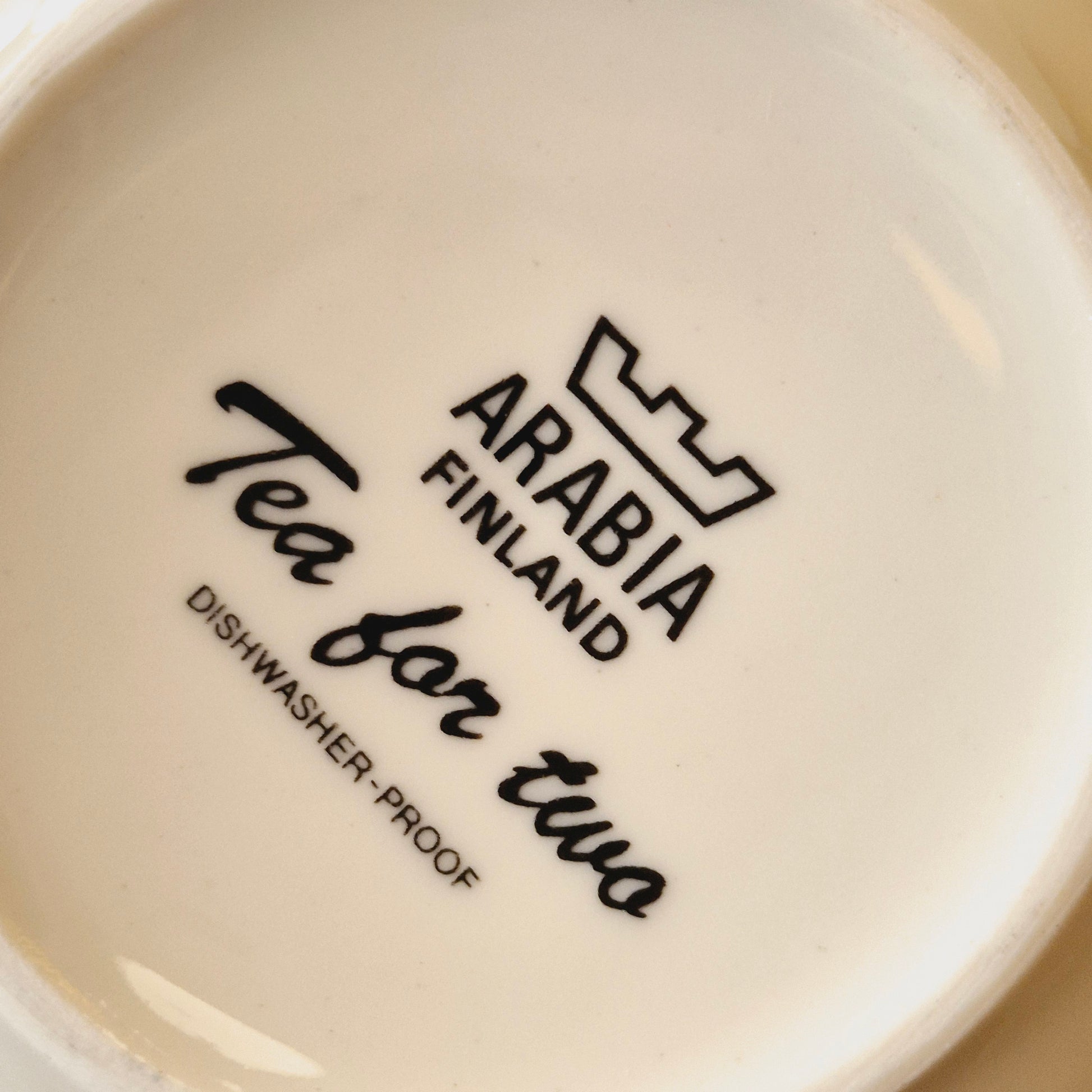 アラビアのガンヴォル・オリン・グロンクヴィストによるシュガーボウル2人用ティー。直径11cm。製造年は1978年から1981年。経年劣化による磨耗。