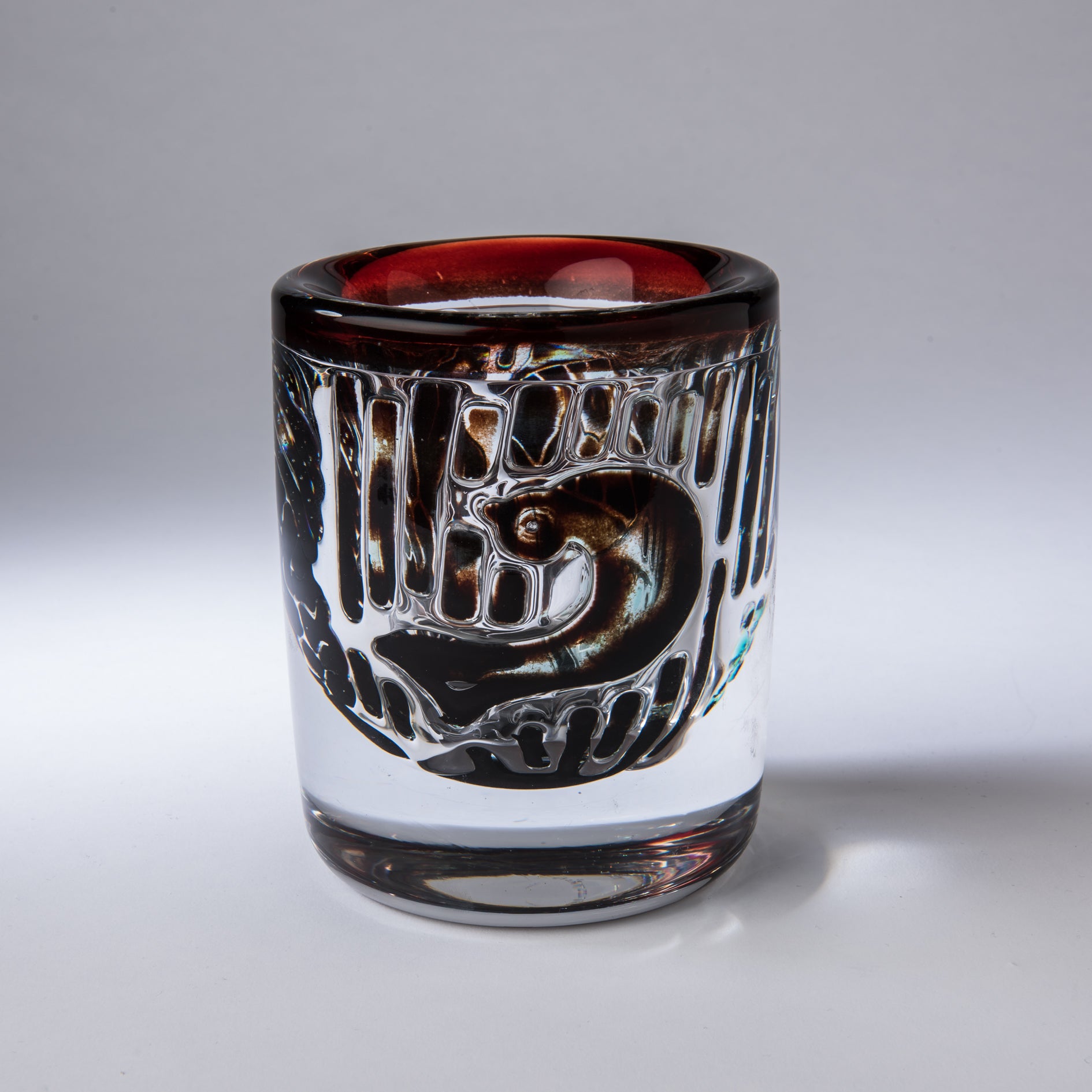 エドヴィン・オーストロムによる『オレフォス』の『アリエルヴァス』。サイン入りORREFORS ARIEL 129 ?エドヴィン・オールストロム。高さ13.5cm。