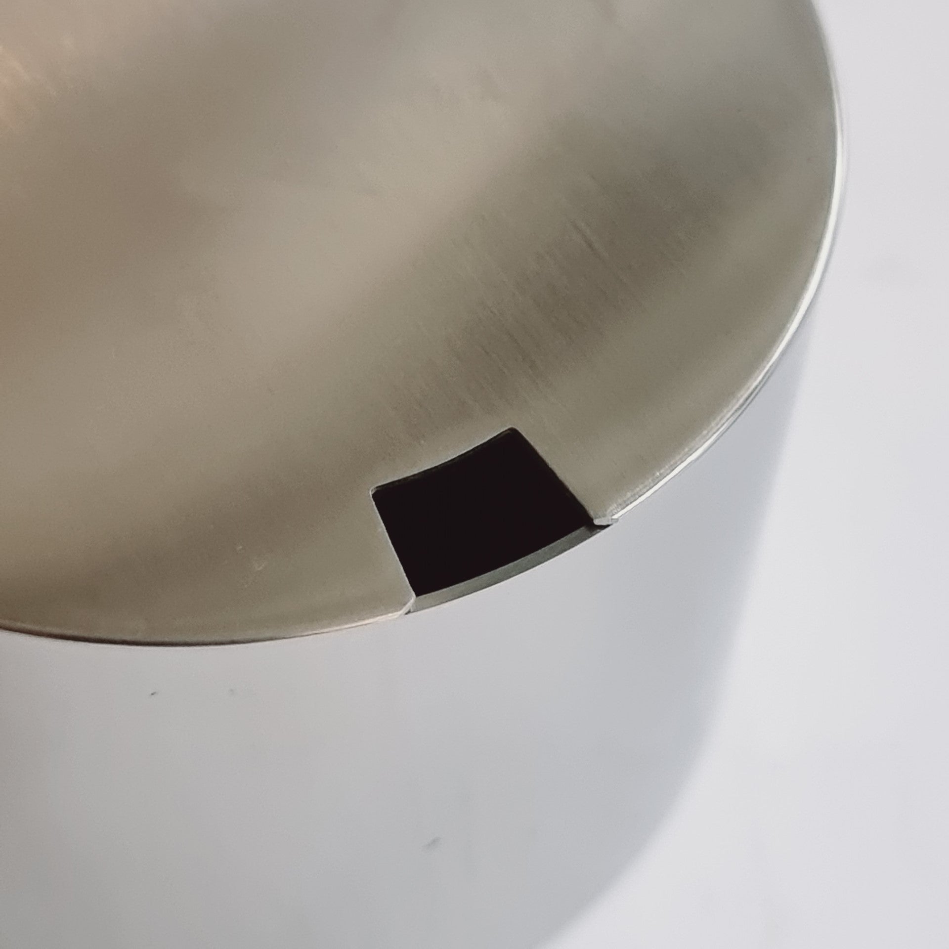 アルネ ヤコブセンシリンダー ラインシュガー ボウル、デンマーク、ステルトン作、高さ 5.5cm/2.17 インチ、直径 7.5cm/2.95。