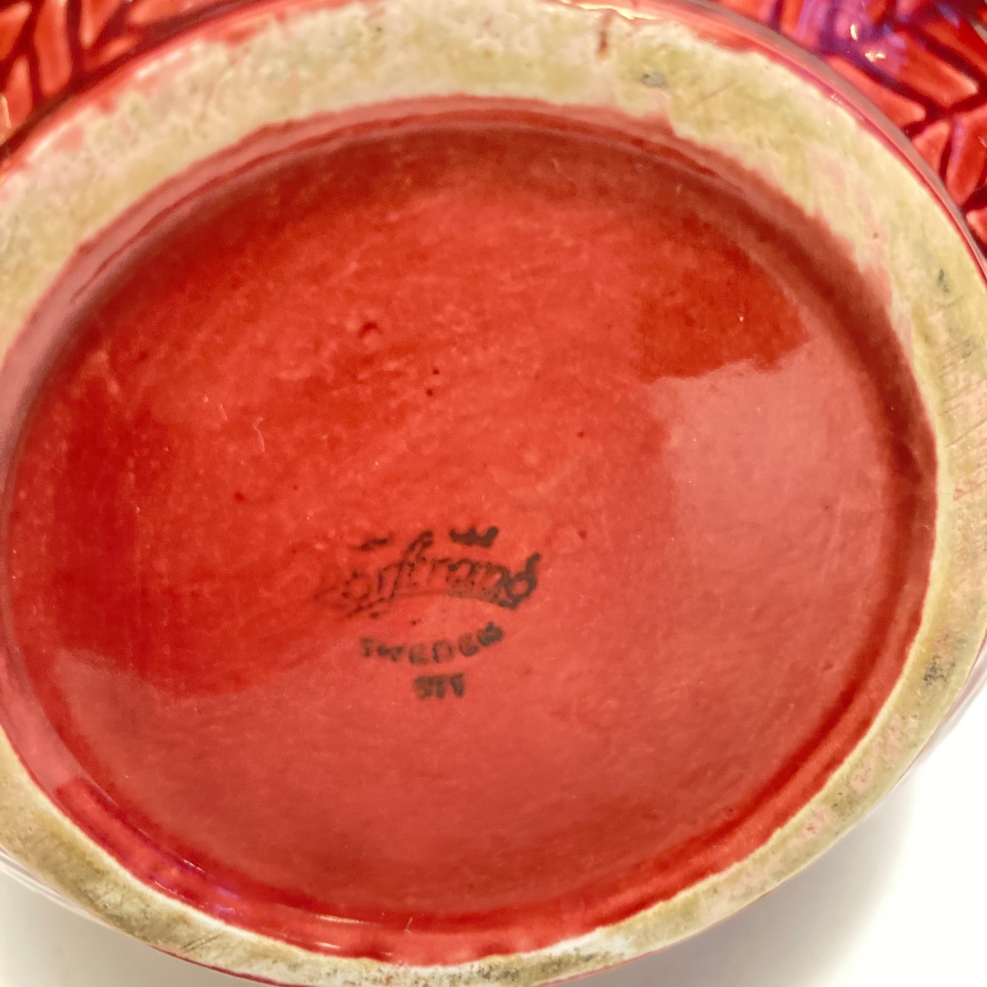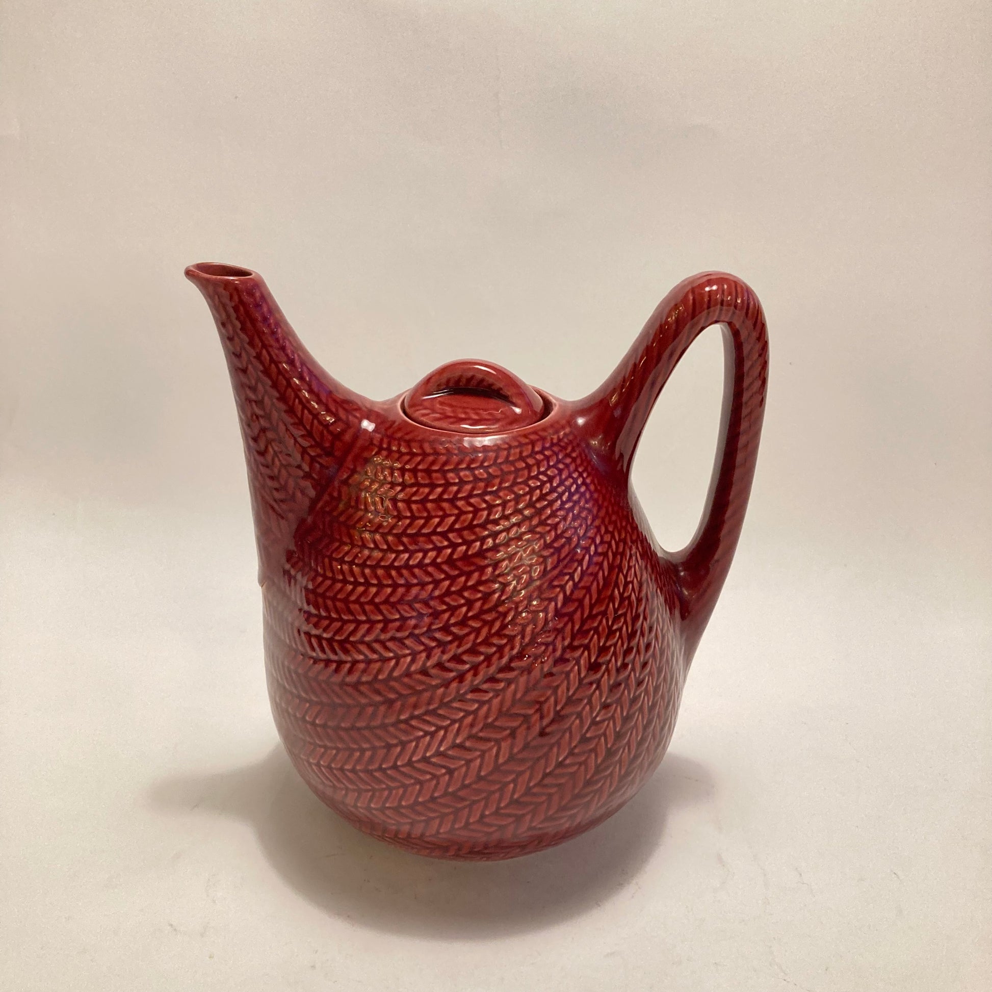 Tekanna röd, Blå Eld av Hertha Bengtsson för Rörstrand. Höjd 18,5cm. Tillverkningsår 1951-1971. Åldersrelaterat slitage.
