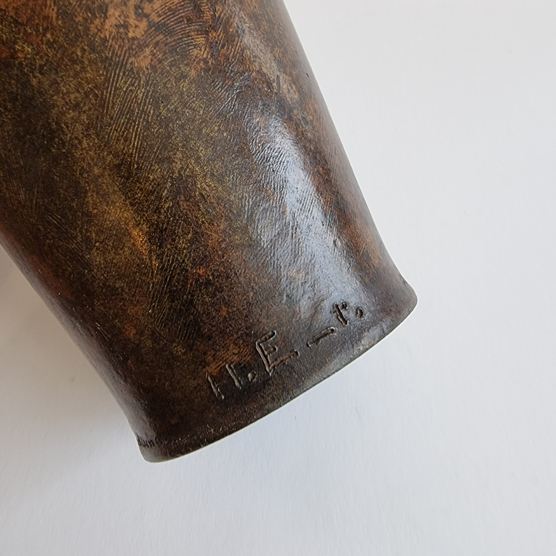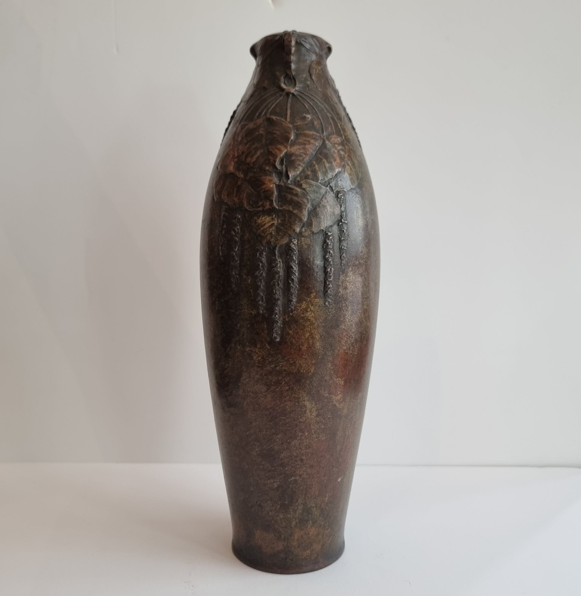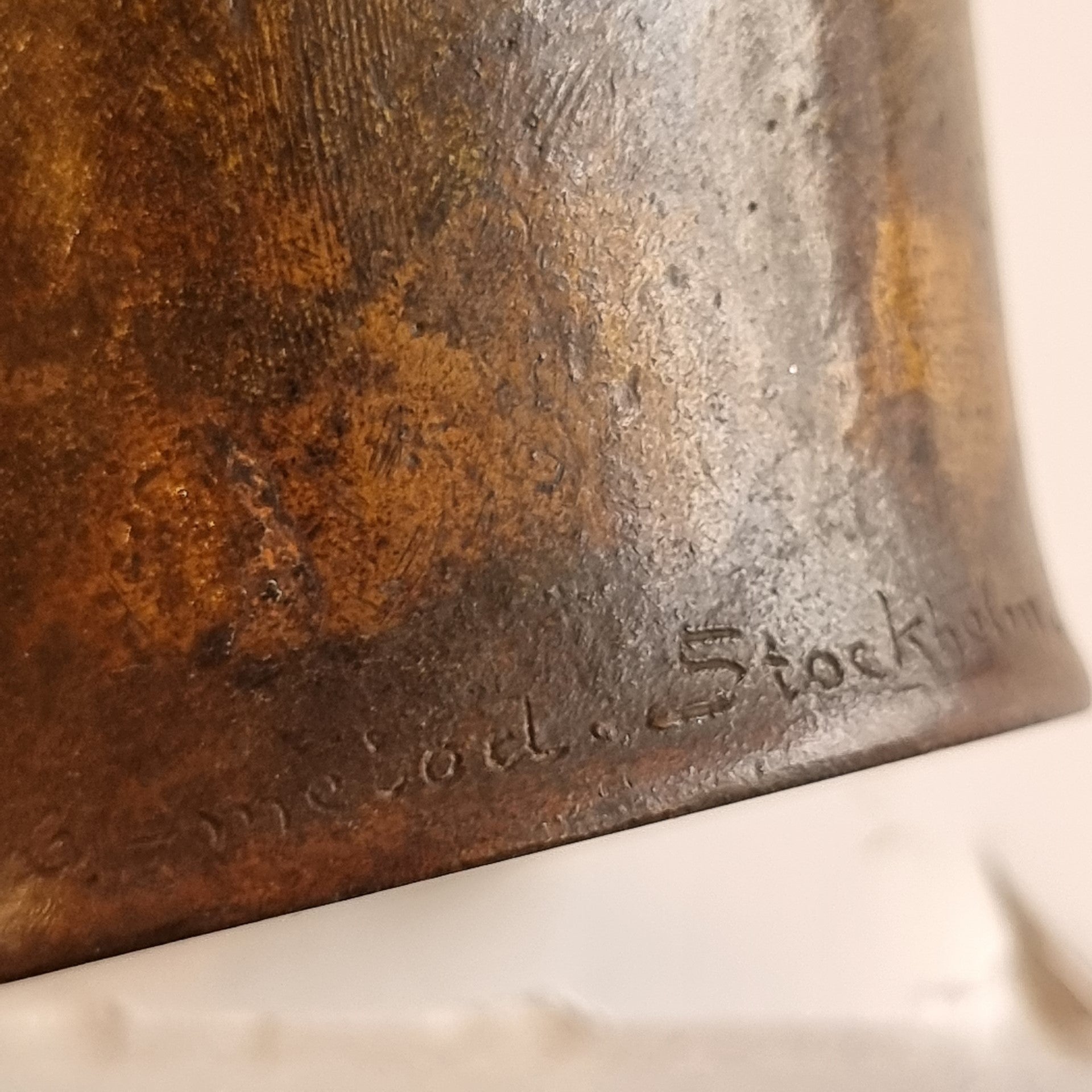 ヒューゴ・エルムクヴィストのレリーフ装飾が施されたブロンズの花瓶。高さ: 27.5cm/10.83インチ。 AB Gj メソッド ストックホルムに署名。 12月Gバックランド。