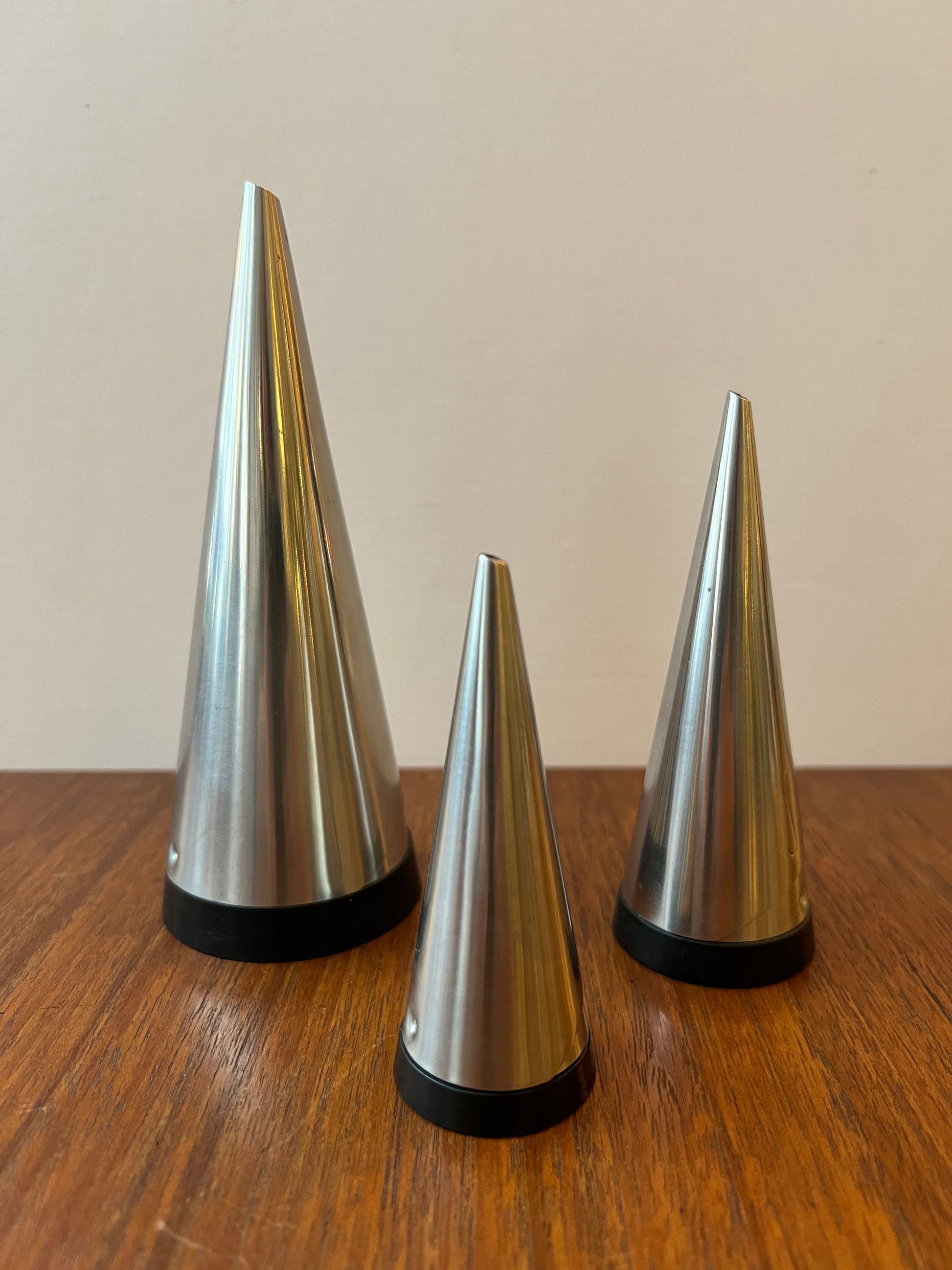 スウェーデンのゲンセのためにピエール・フォルセルが作った塩、コショウ、砂糖ディスペンサー、高さ 9cm/3.54 インチ - 15cm/5.91 インチ。