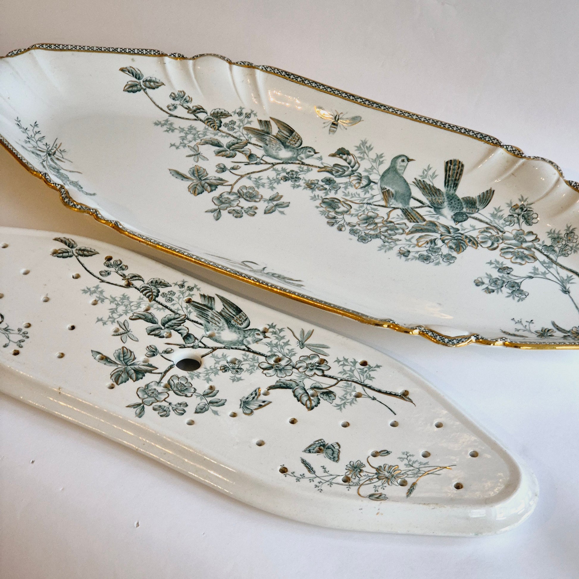 グスタフスベリの魚料理/サービングディッシュ Wexiö Gold。 46cm×22cm。製造年は1892年から1939年。経年劣化による磨耗。