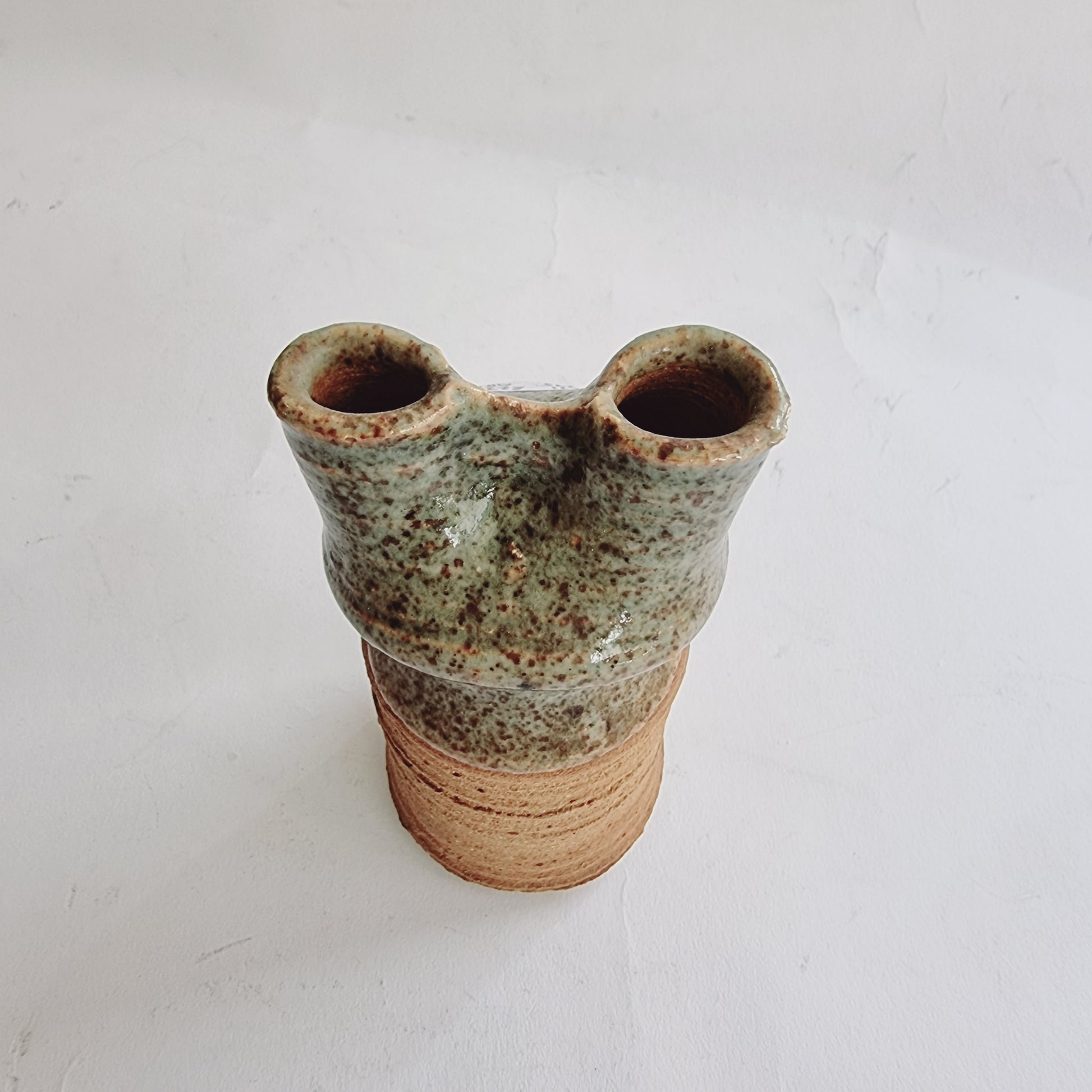 コンストファックの高等美術学校 (HKS) のユニークな二重セラミック花瓶、HKS のマーク、高さ 14.5 cm。無名の画家。