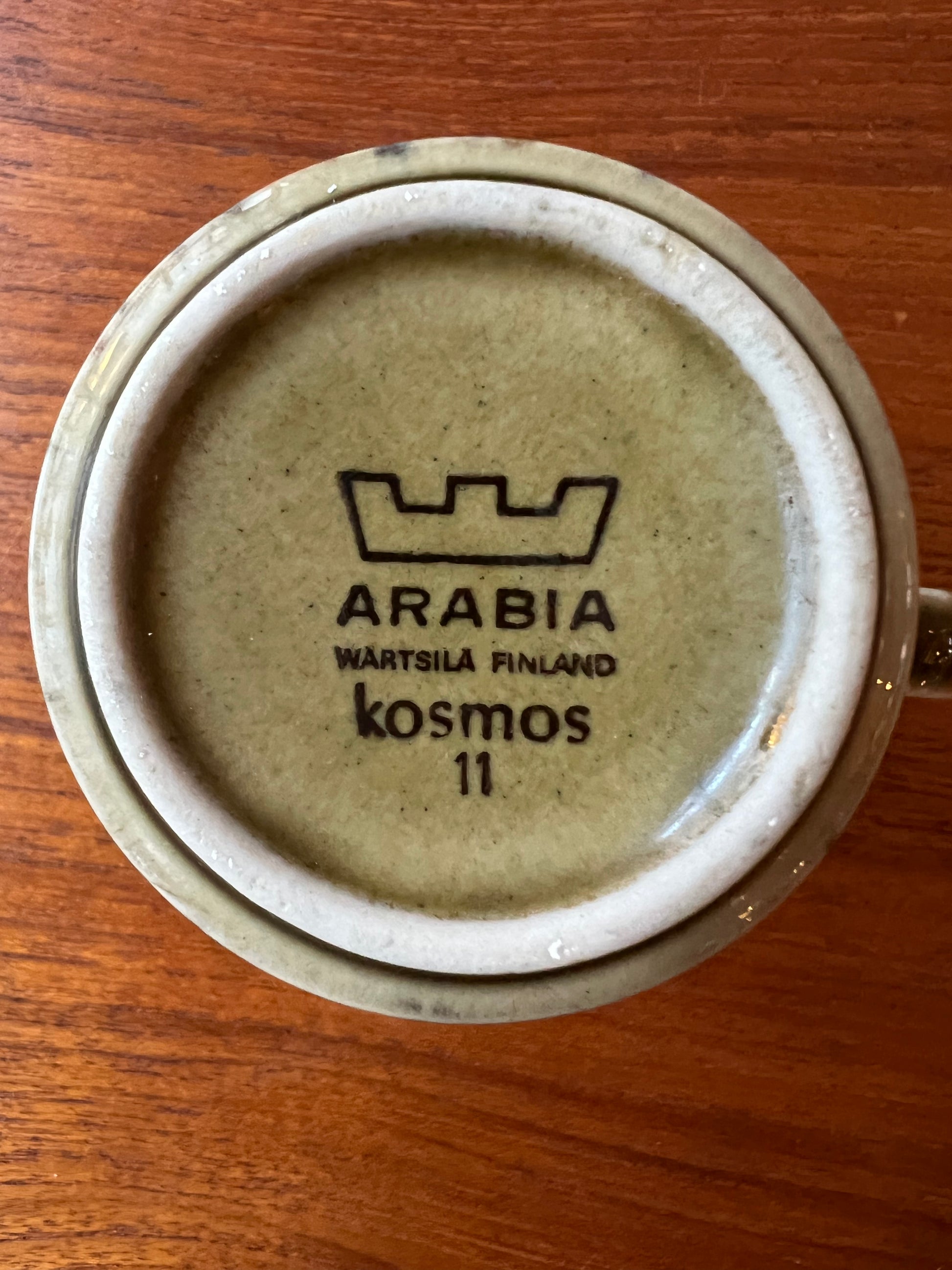 コーヒーカップコスモス Gunvor Olin-Grönqvist著、アラビア版。製造年は1962年から1976年。経年による磨耗。