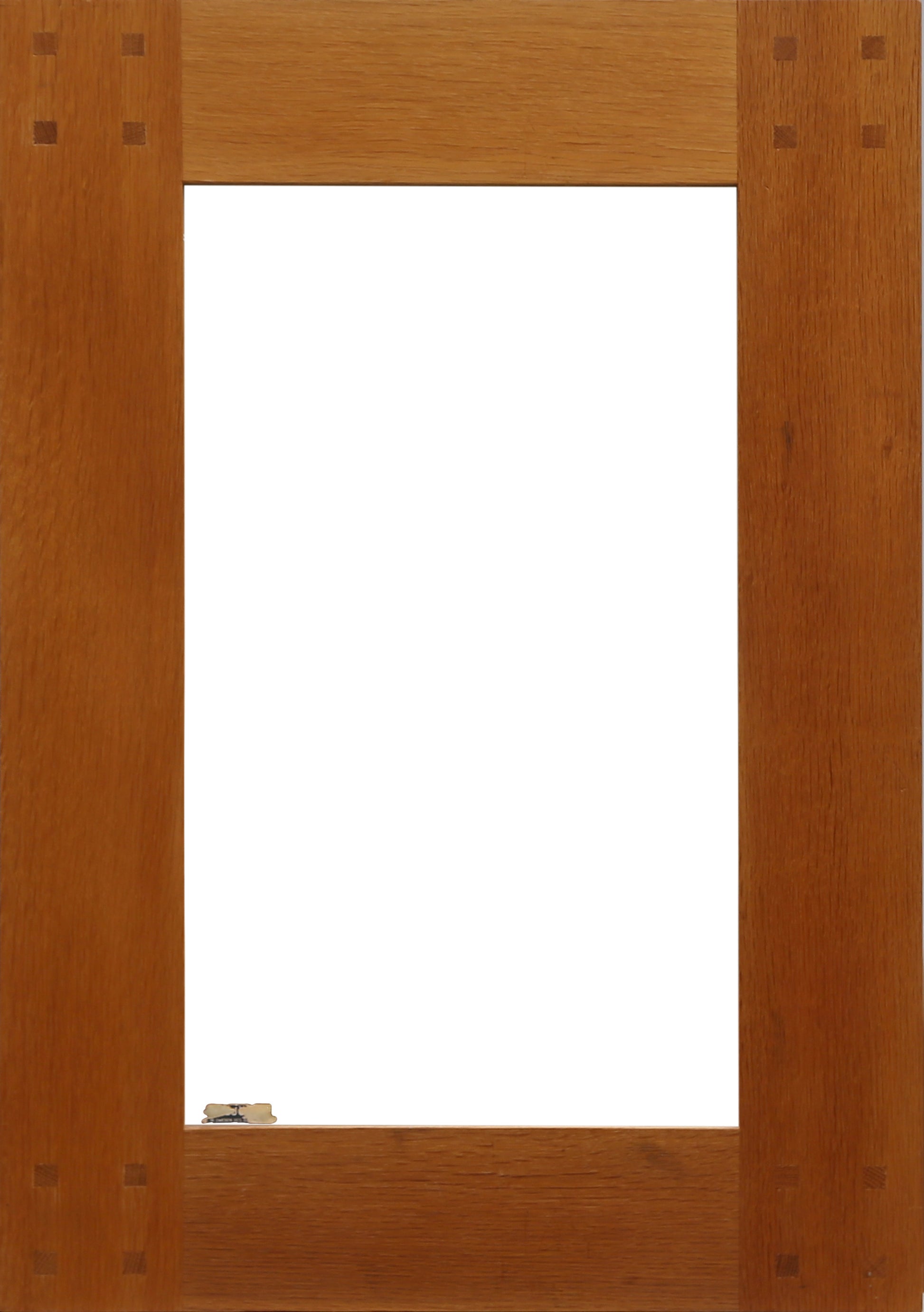 ウノ&オステン・クリスチャンソンがラクサスのためにデザインしたオーク材のミラー、1960年代。高さ:57cm、幅:40cm。