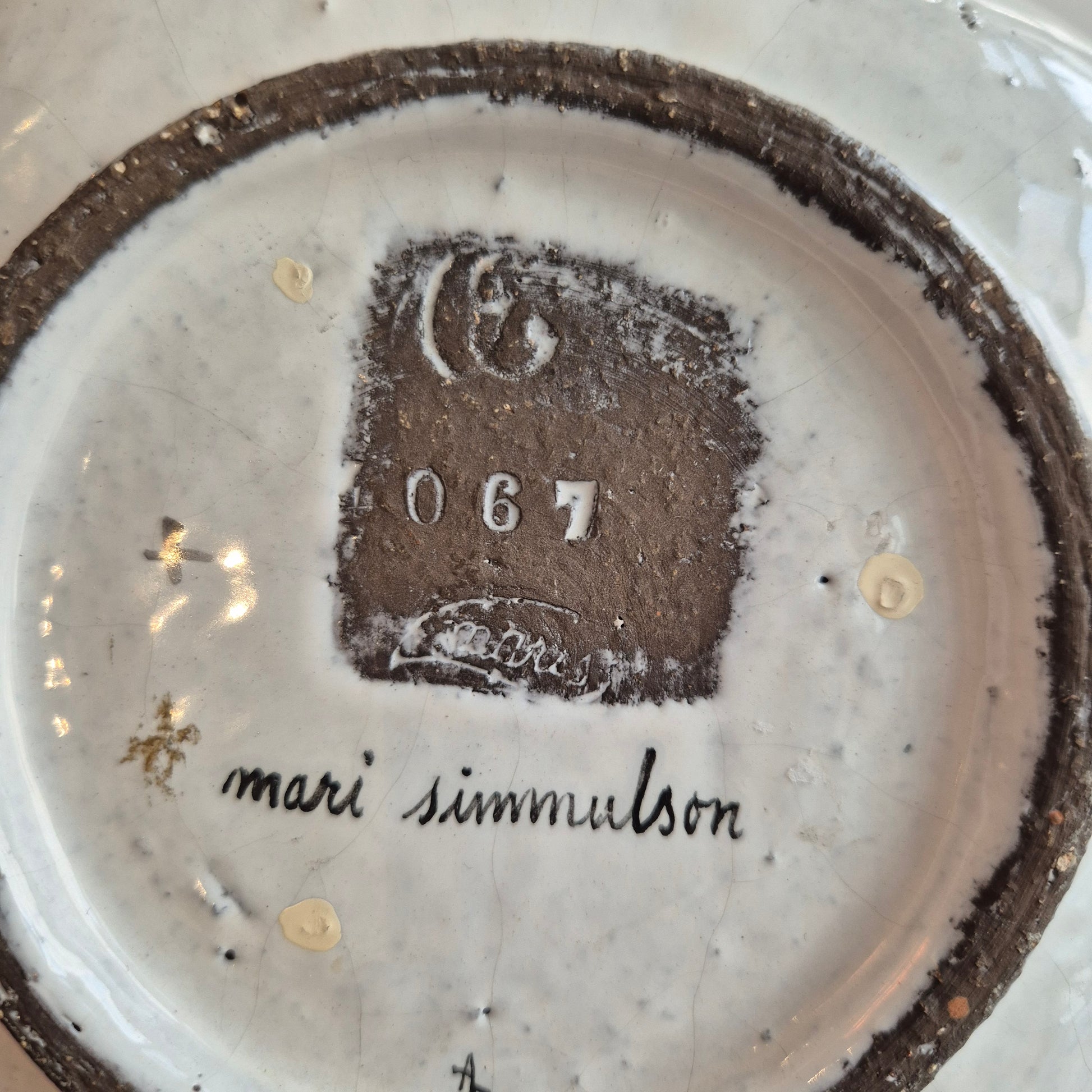 マリ・シムルソンの陶器ボウル、ウプサラ・エクビー、1950年代。 16.5cm×16.5cm。 UE 4067 マリスとマリ シムルソンのサイン入り。