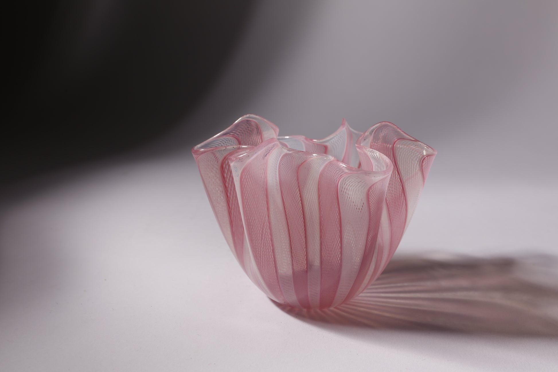 ハンカチボウル ファゾレット フルヴィオ・ビアンコーニとパオロ・ヴェニーニによる。高さ8cm、直径11cm。エッチングスタンプでサイン入り イタリア、ヴェニーニ・ムラーノ。