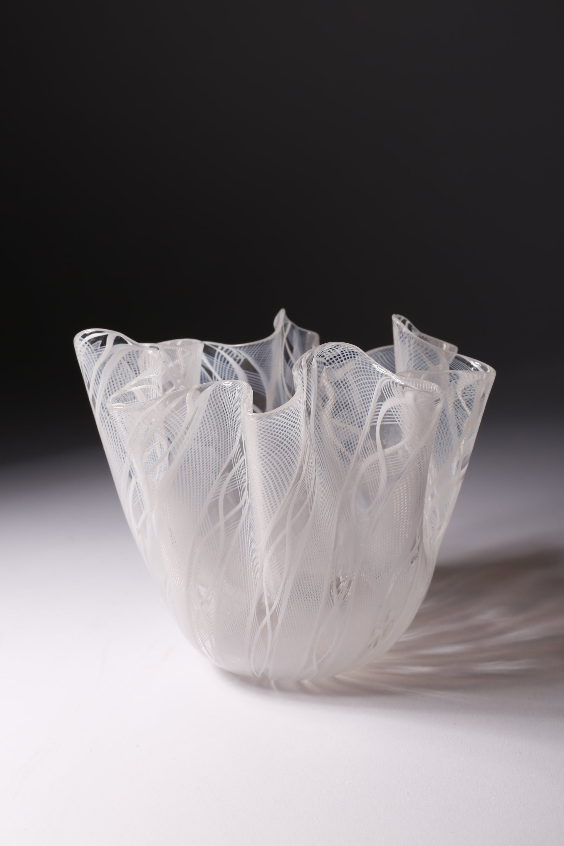 フルヴィオ・ビアンコーニとパオロ・ヴェニーニによるハンカチボウルFazzoletto 。高さ11cm。丸いエッチングスタンプで署名されています。