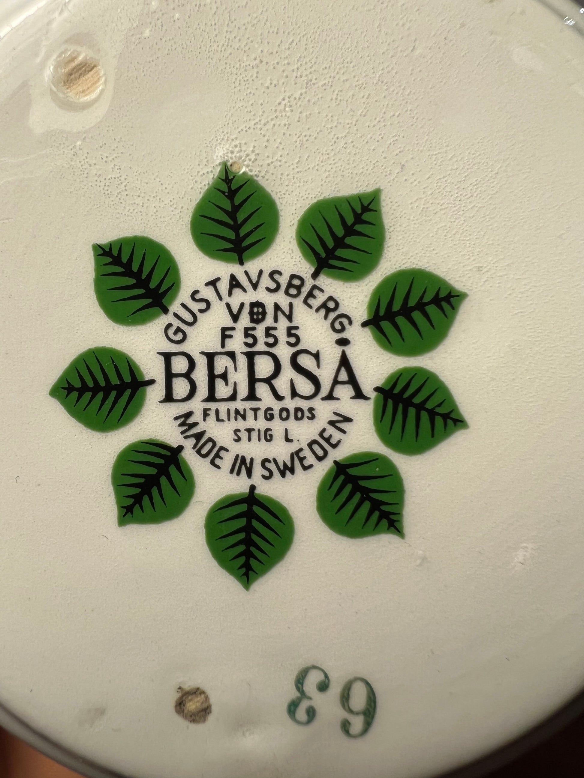 スティグ・リンドベリによるグスタフスベリ用のベルソークリーマー、高さ: 6cm/2.36 インチおよび 11.5cm/4.53 インチ x 8cm/3.15 インチ。製造年は 1960 年から 1974 年です。年齢と使用に応じて摩耗します。