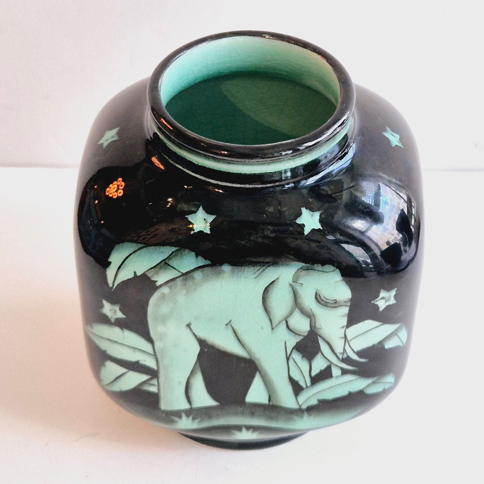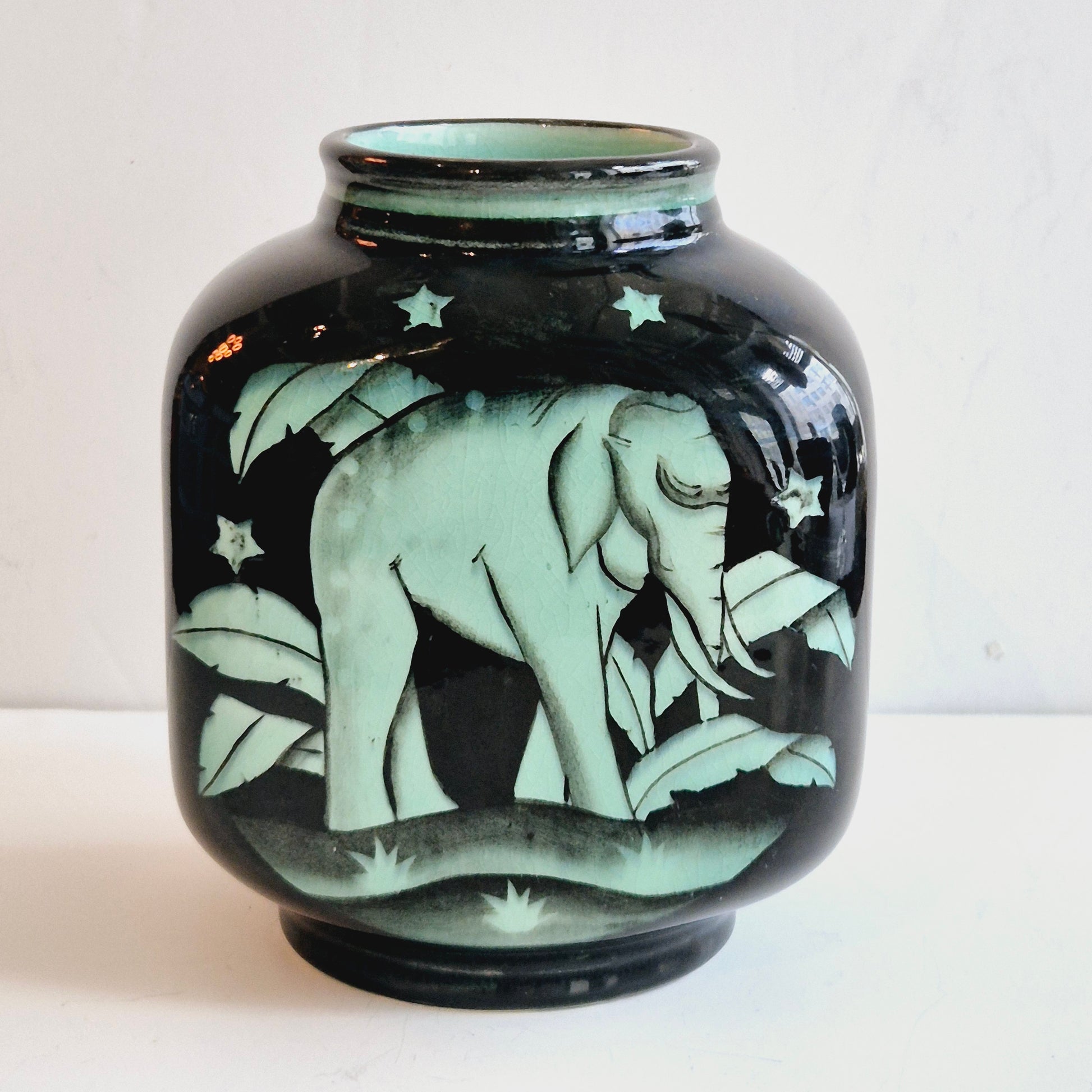 象をモチーフにした花瓶、イルゼ・クレッソン作、ロールストランド社のシリーズ 5、1930 年代。高さ:13cm。