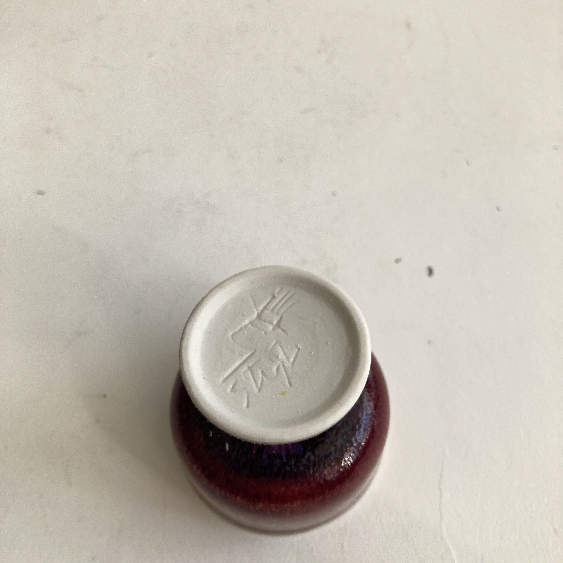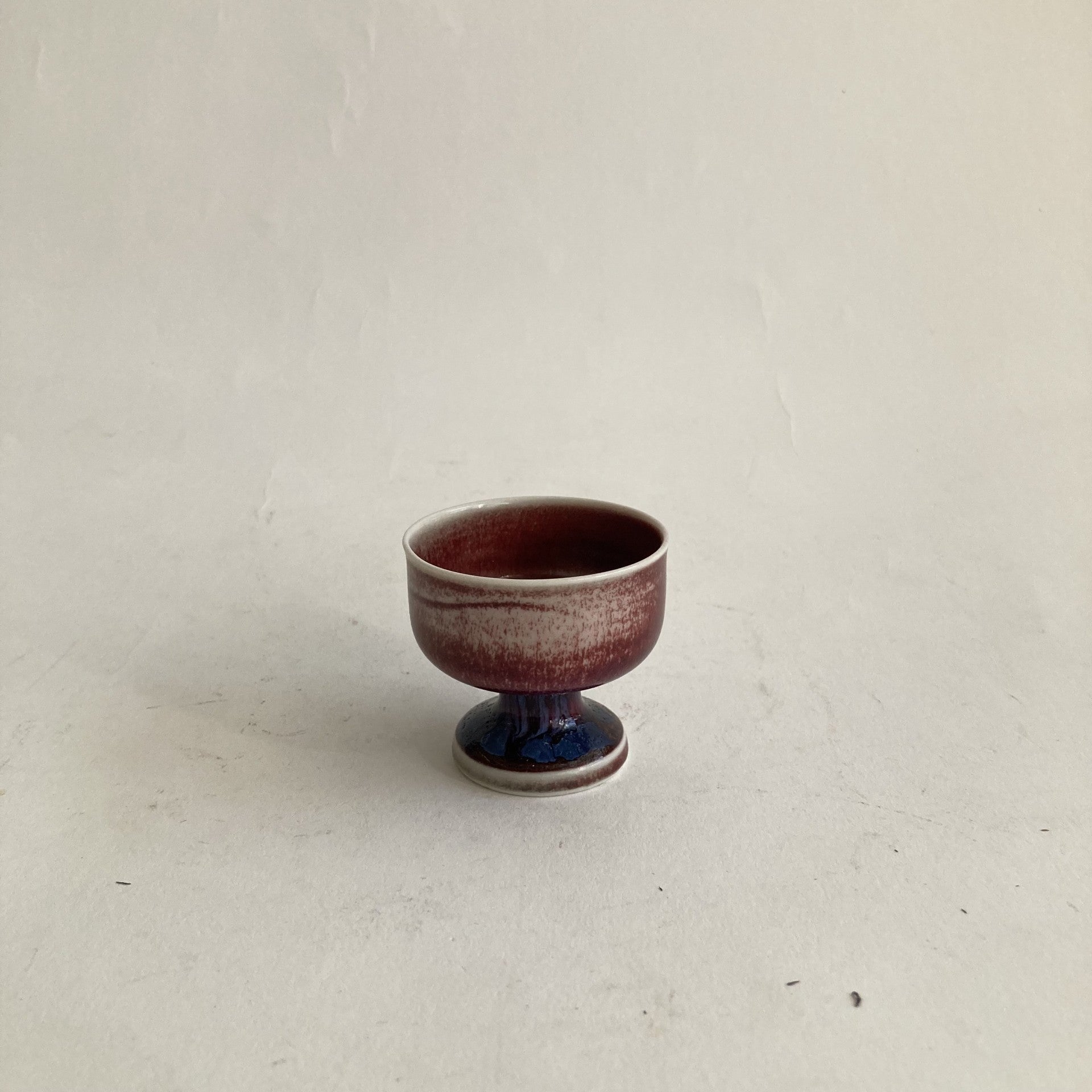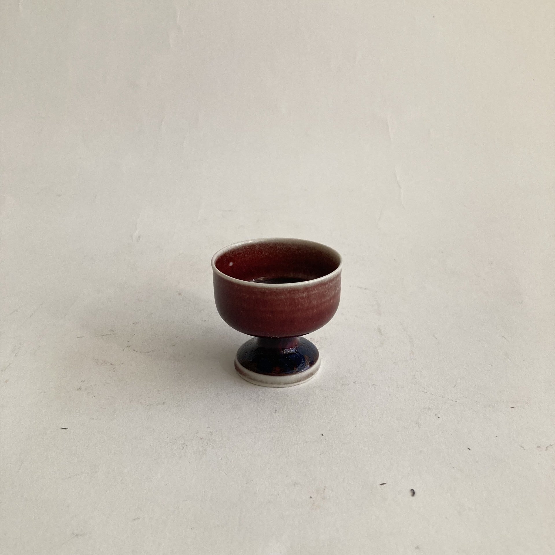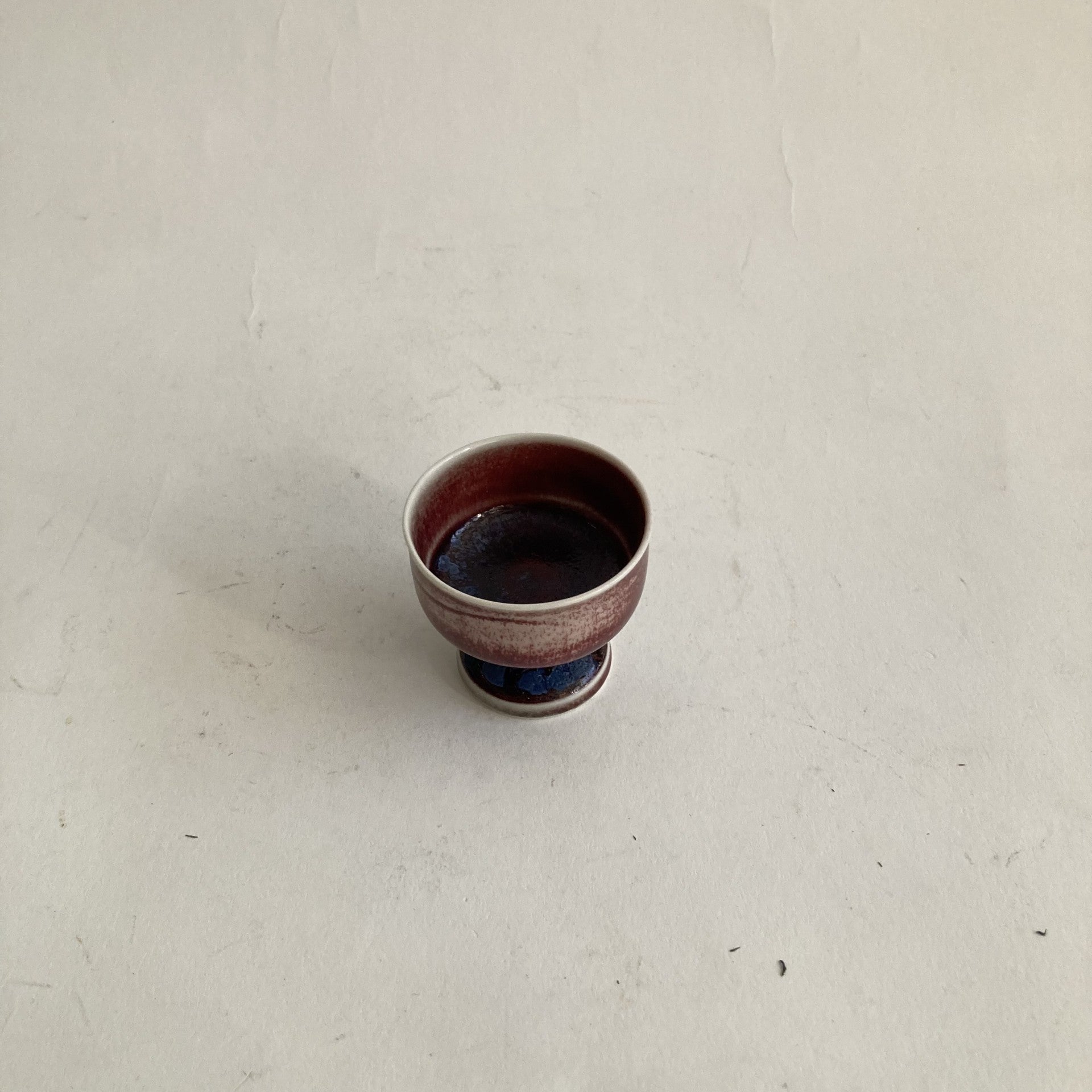 Miniatyr i stengods, av Stig Lindberg för Gustavsberg. H: 4,8cm och diam. 5cm. Signerad STIG L samt "Studiohanden".
