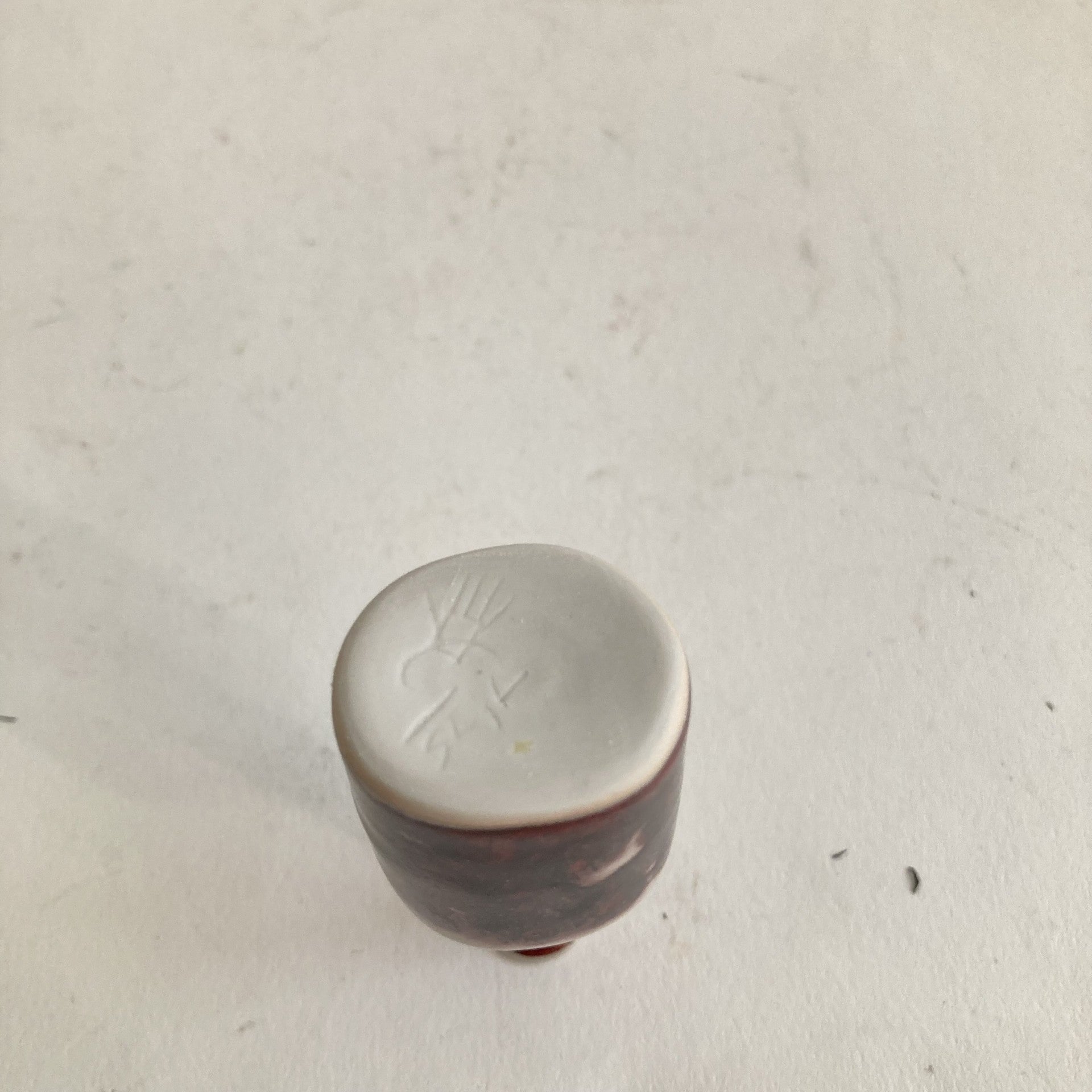 Miniatyr i stengods, av Stig Lindberg för Gustavsberg. H: 6,5cm. Signerad Stig L samt "Studiohanden".