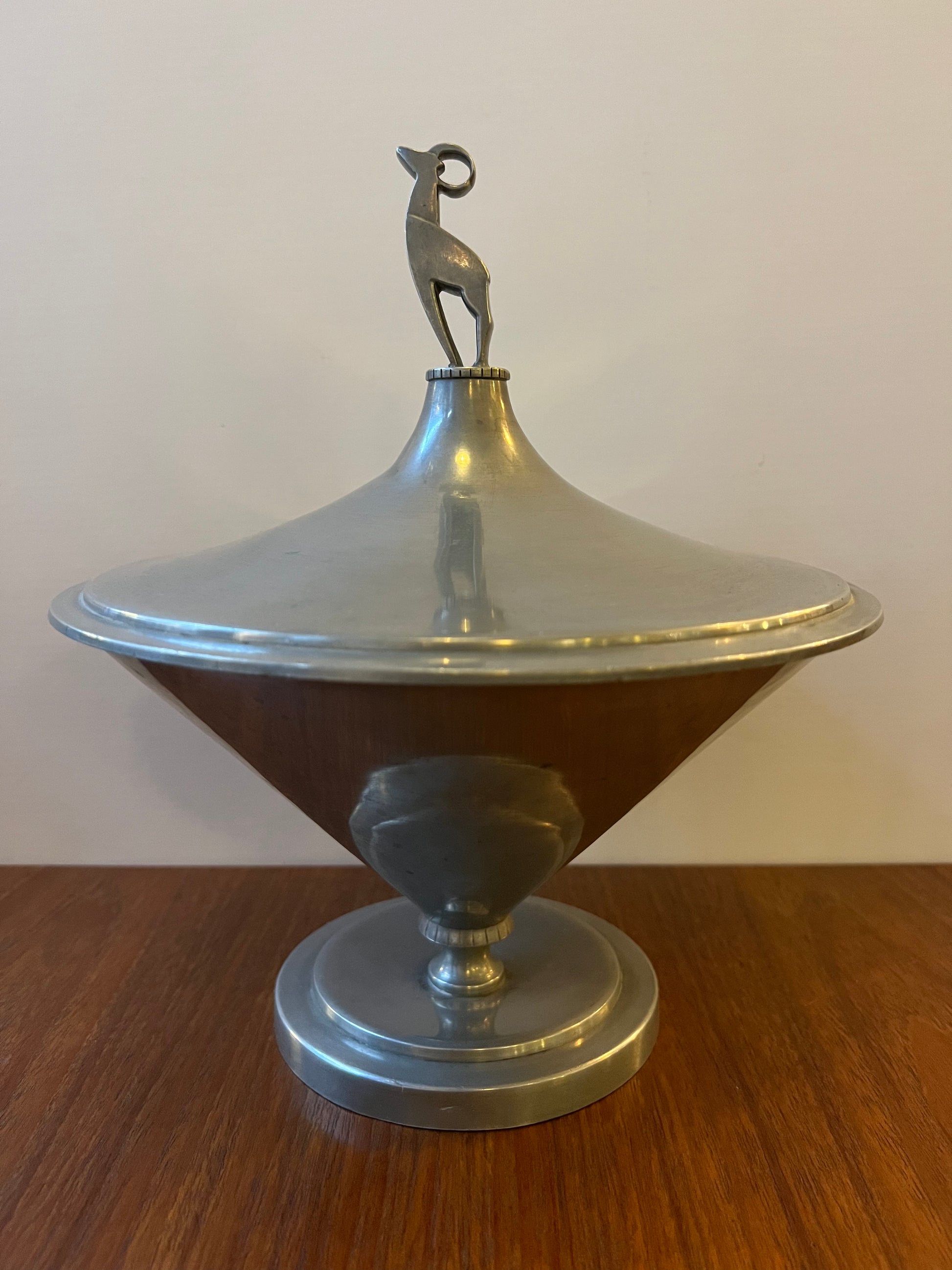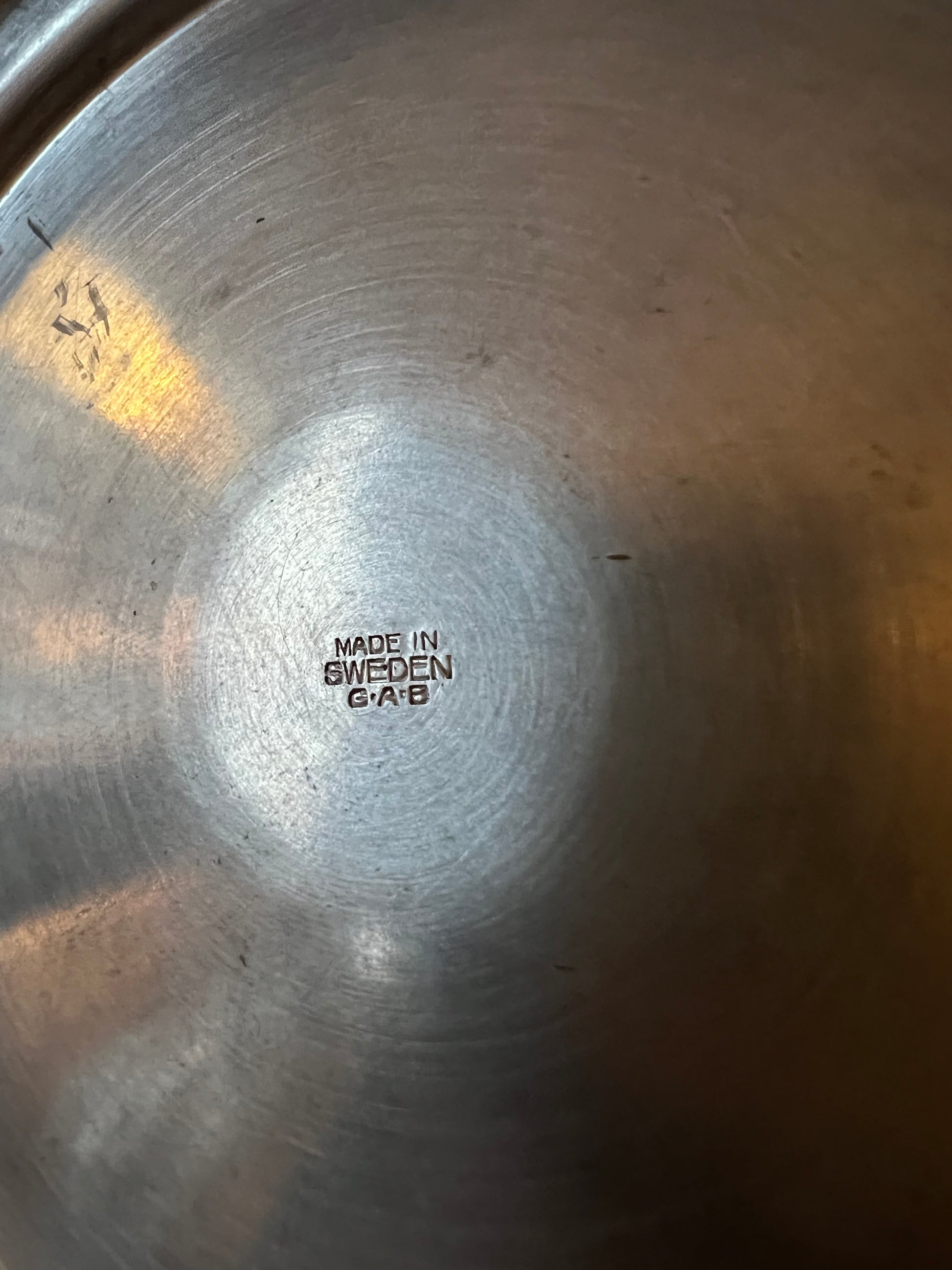 蓋付きボウル、Guldsmedsaktiebolaget、GAB のピューター製。高さ26cm、直径23cm。