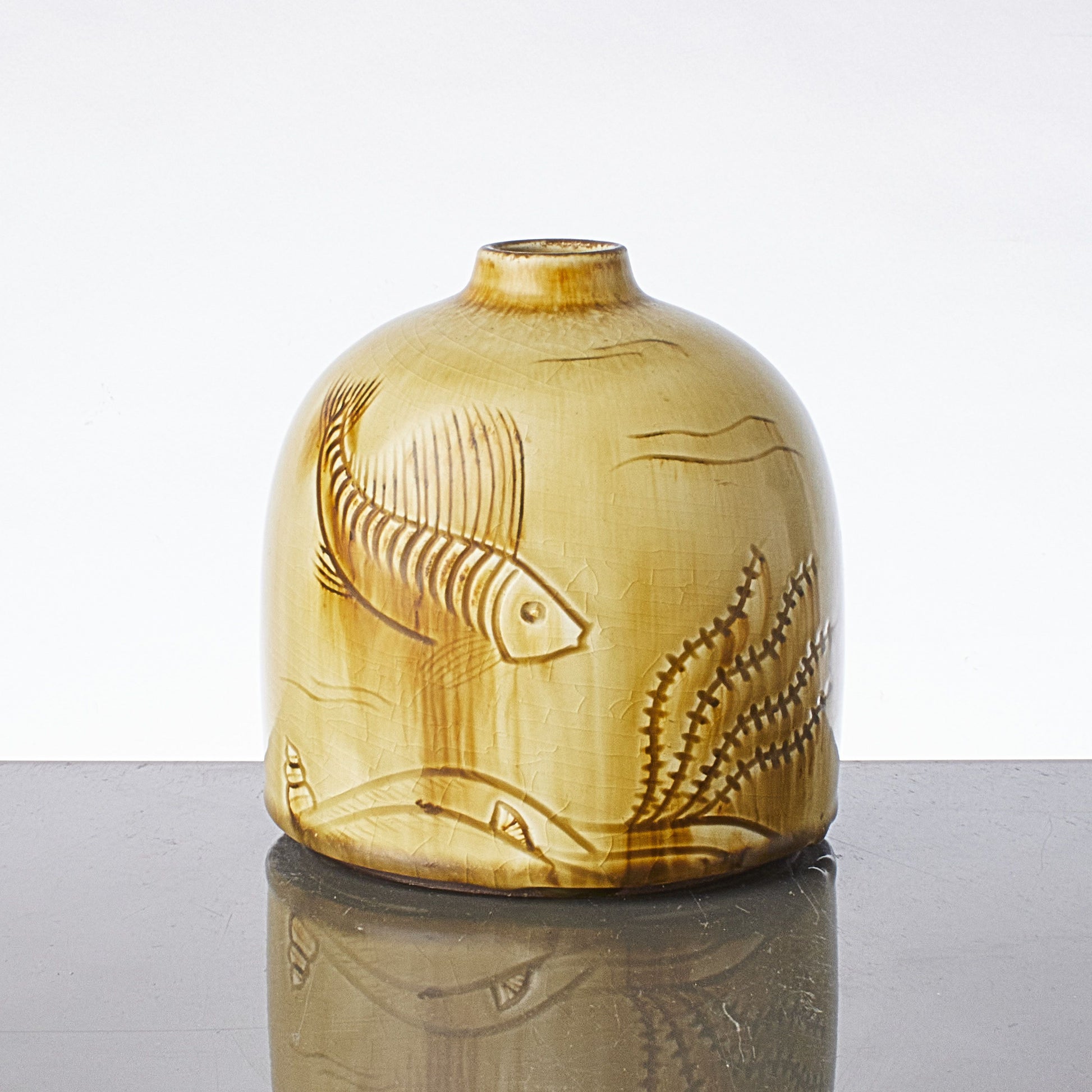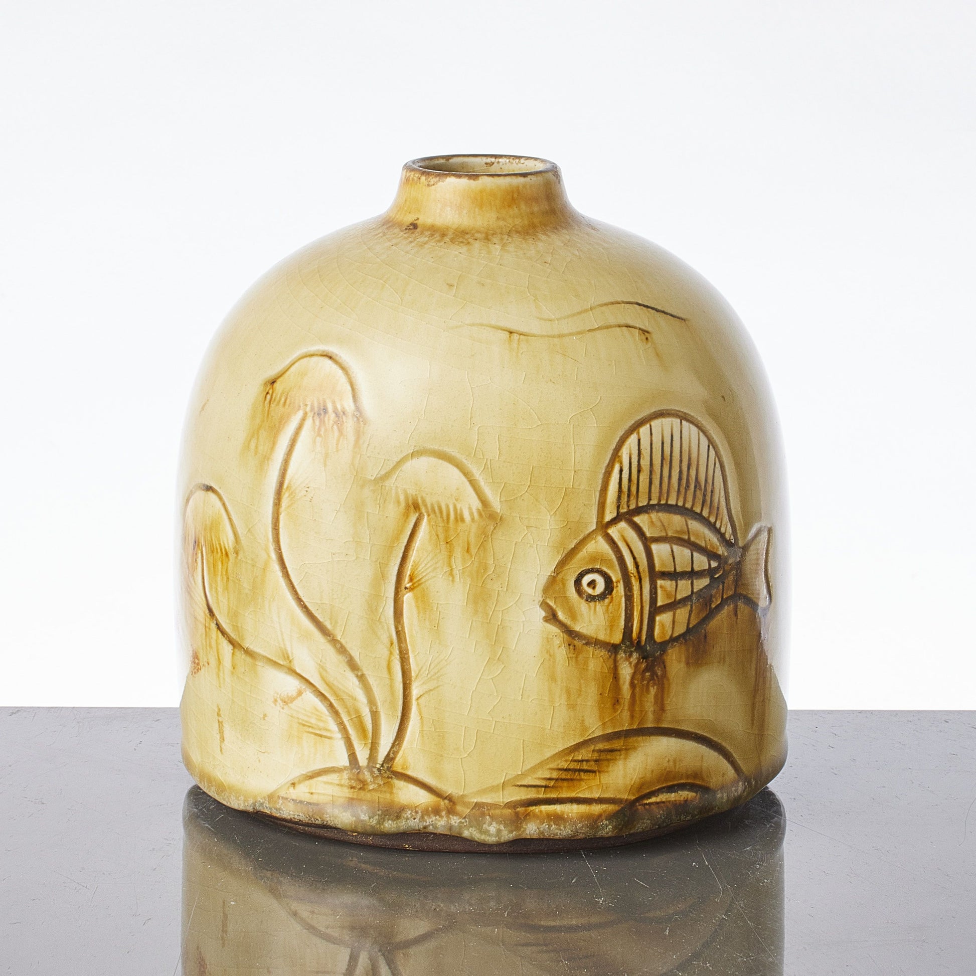ゲルトルート・レーネグレンによるロールストランド用の石器の花瓶、1930~40年代。高さ: 14cm/5.5インチ。サイン入り RÖRSTRAND SWEDEN LÖNEGREN