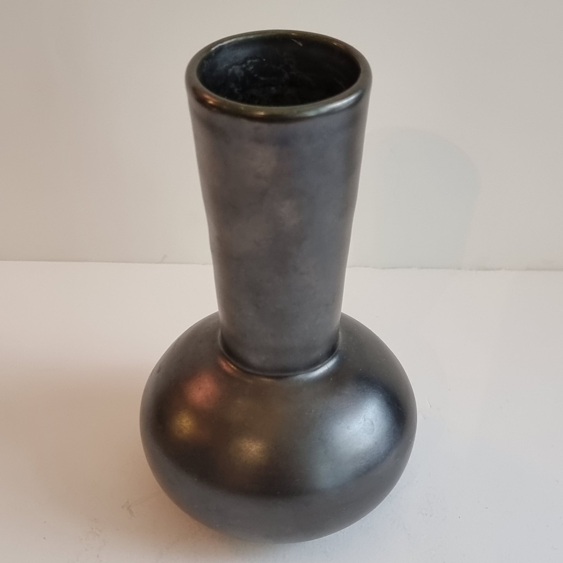 陶器製の黒い金属釉の花瓶、モデル 2762。1936 年から 1938 年、ウプサラ・エクビーのためにハラルド・オスターグレン作。高さ:15センチメートル