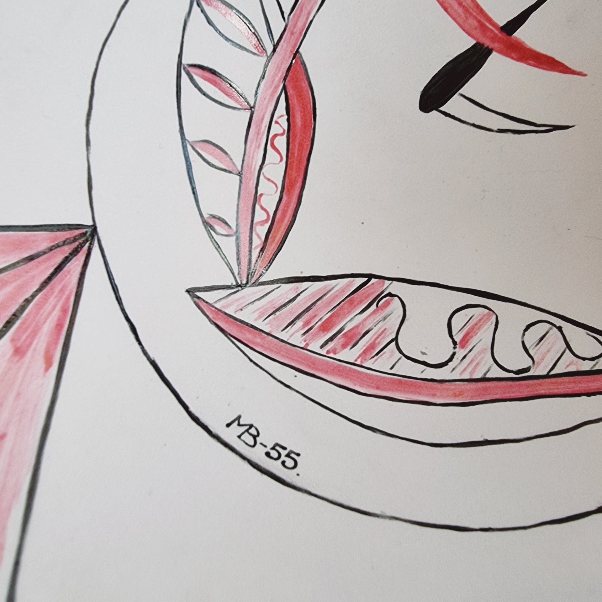 グスタフスベリのためにヴィルヘルム・コーゲが制作したシューレアモデルのボウル、高さ8cm/3.15インチ、直径22.5cm/8.86インチ。手描きでMB-55のマークが入っています。