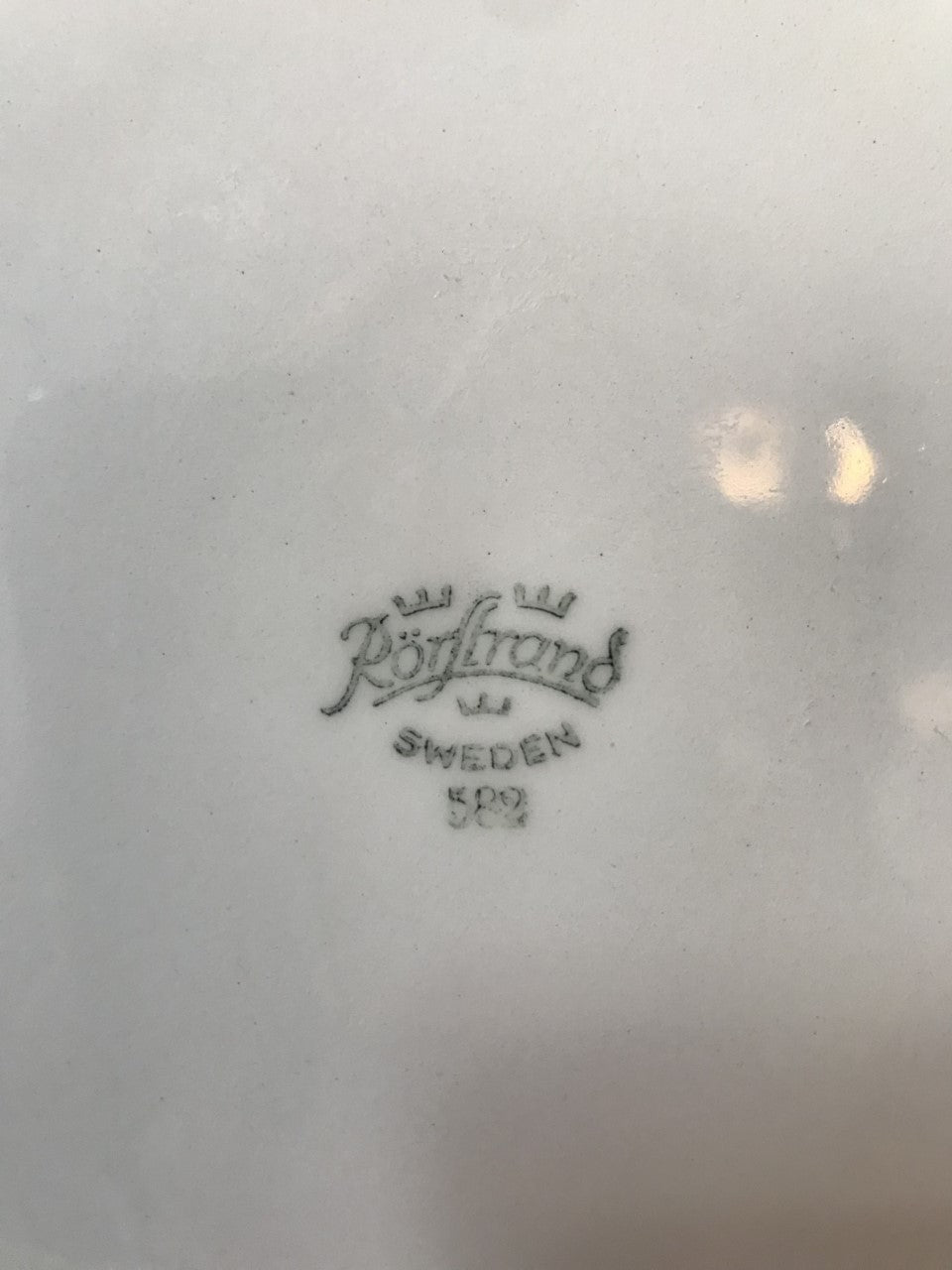 Tallrik Blå Eld av Hertha Bengtsson för Rörstrand. Diameter 23cm. Tillverkningsår 1951-1971. Åldersrelaterat slitage.