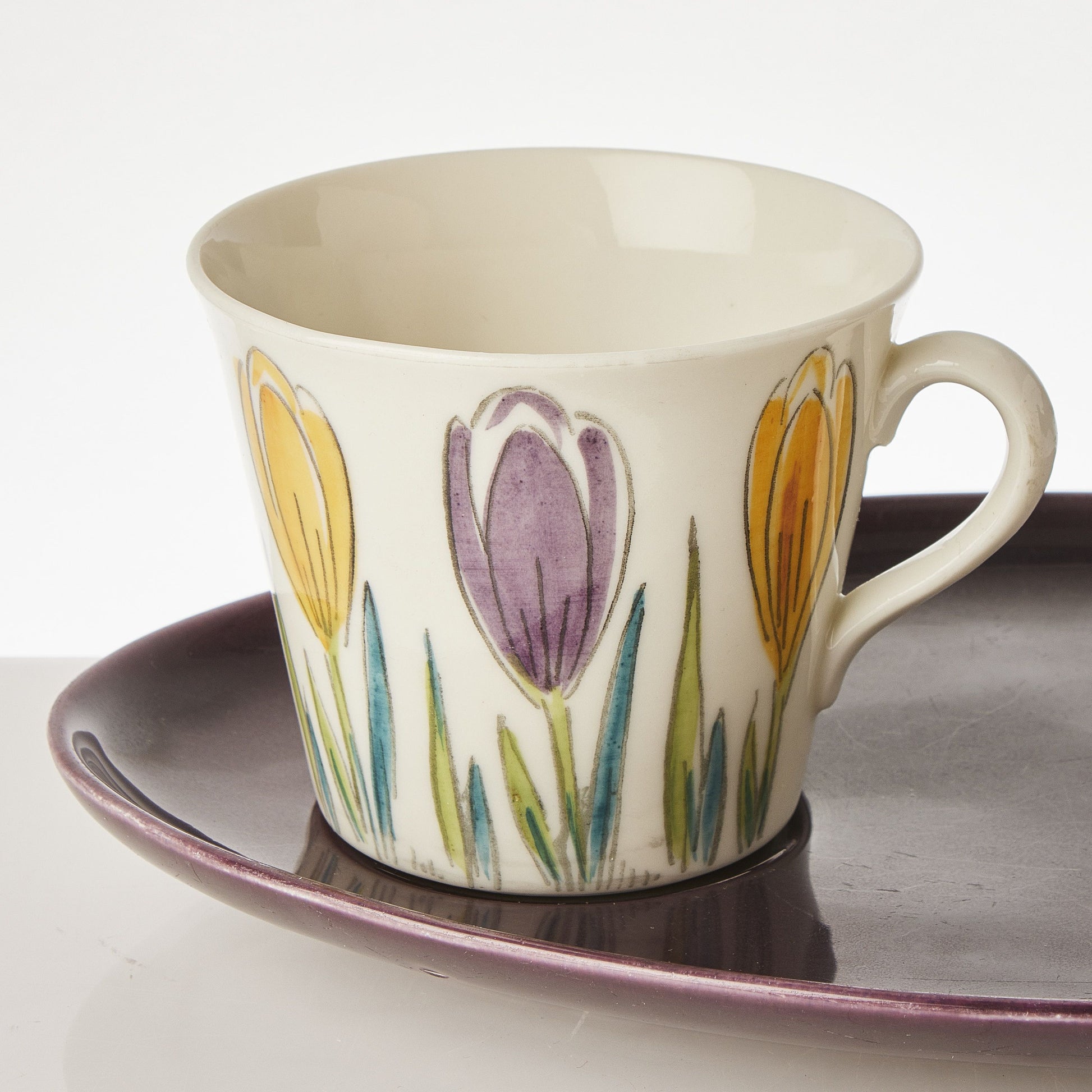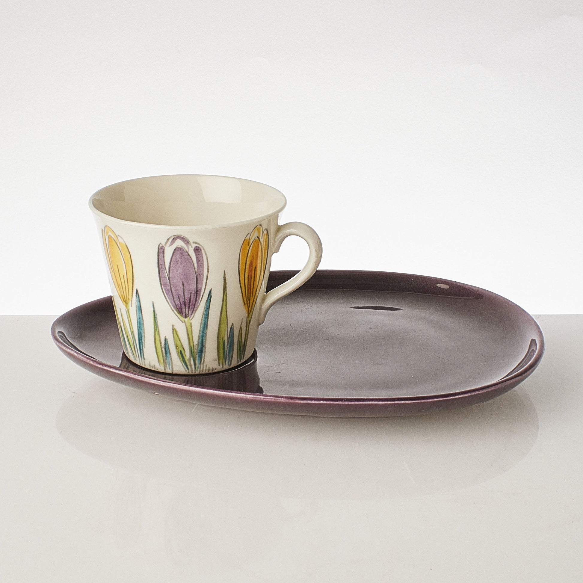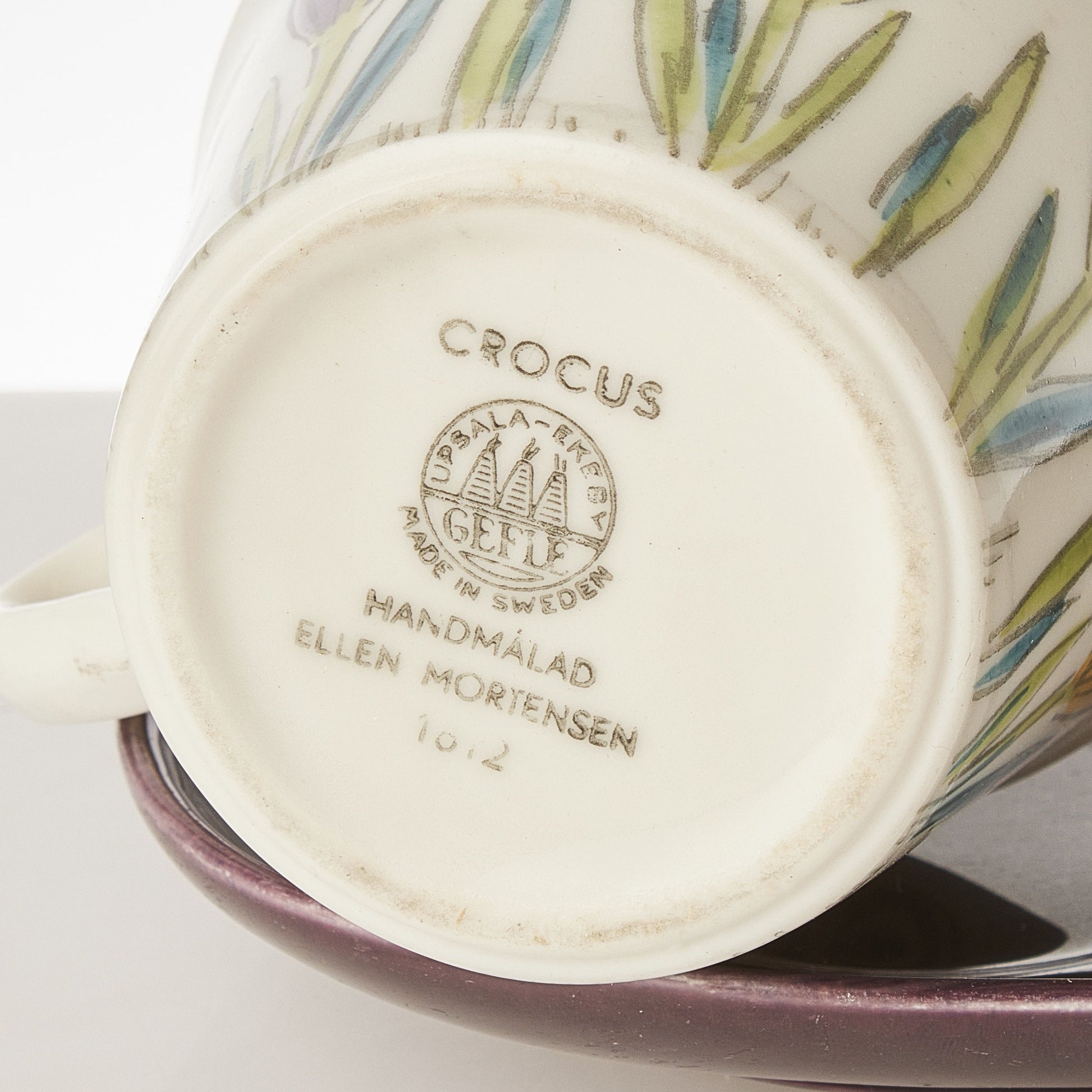 TV-kopp Tekopp Crocus av Ellen Mortensen för Gefle Porslinsfabrik. Tillverkningsår 1959-1964. Åldersrelaterat slitage.