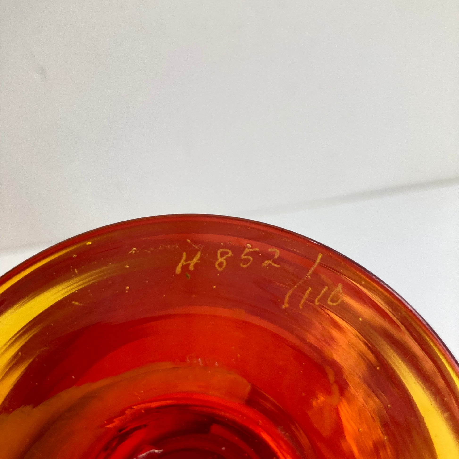 Skål på fot av Erik Höglund för Boda glasbruk. Höjd 14,5cm och diameter 11cm. Signerad H 852/110