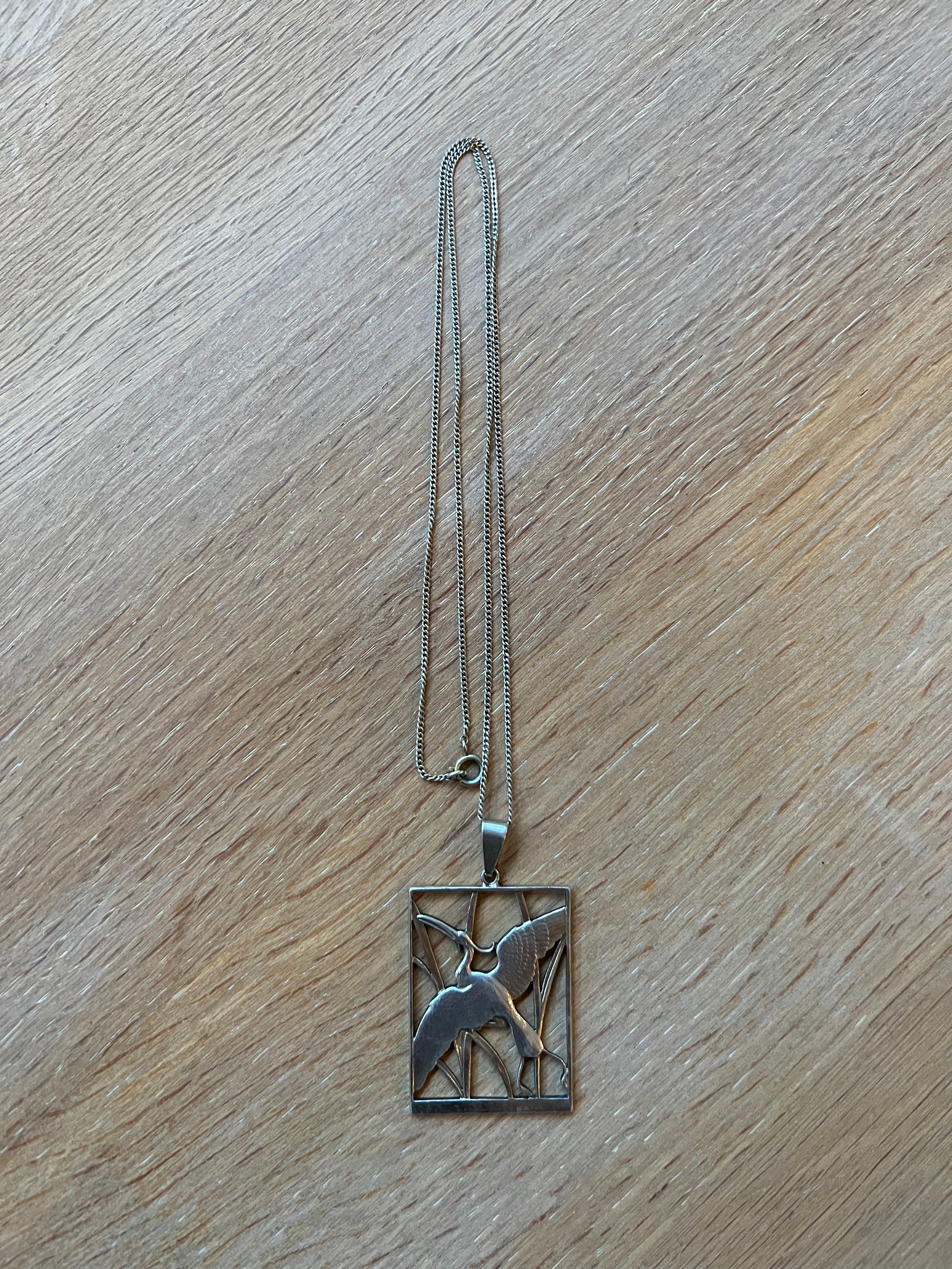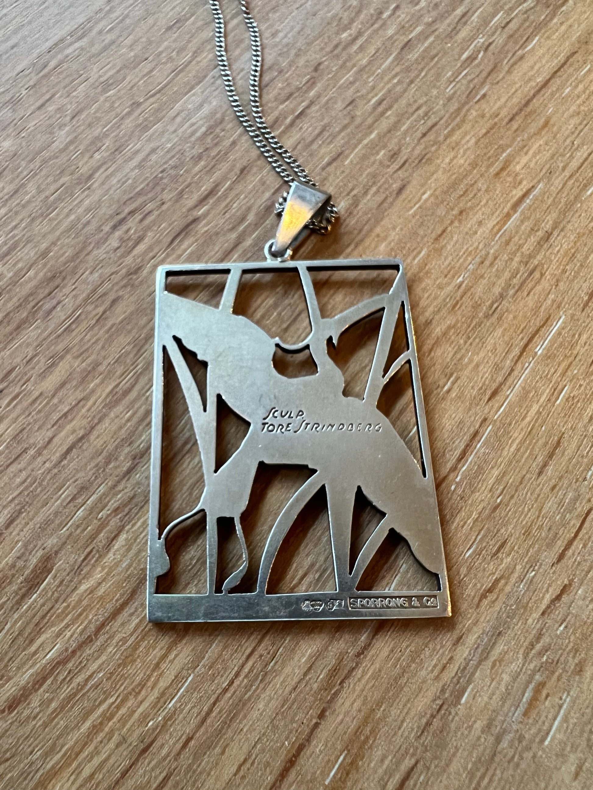 Halssmycke i silver av Tore Strindberg, 4,5cm x 3,5cm. Kedja 30cm.