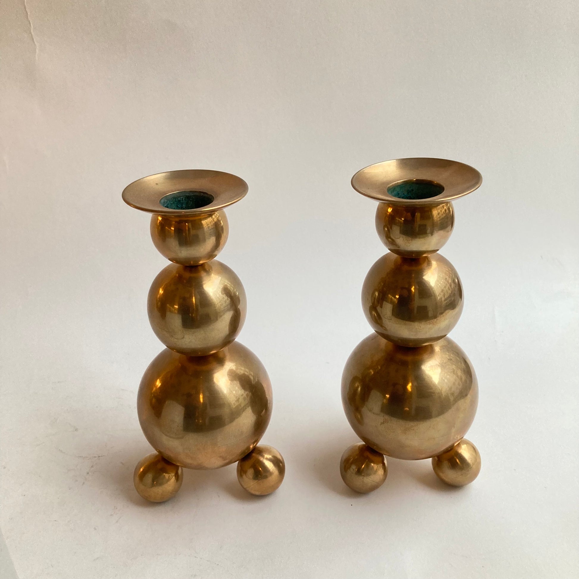 Paret ljusstakar nr 029 i mässing från Gusums Bruk, höjd 17,5 cm.