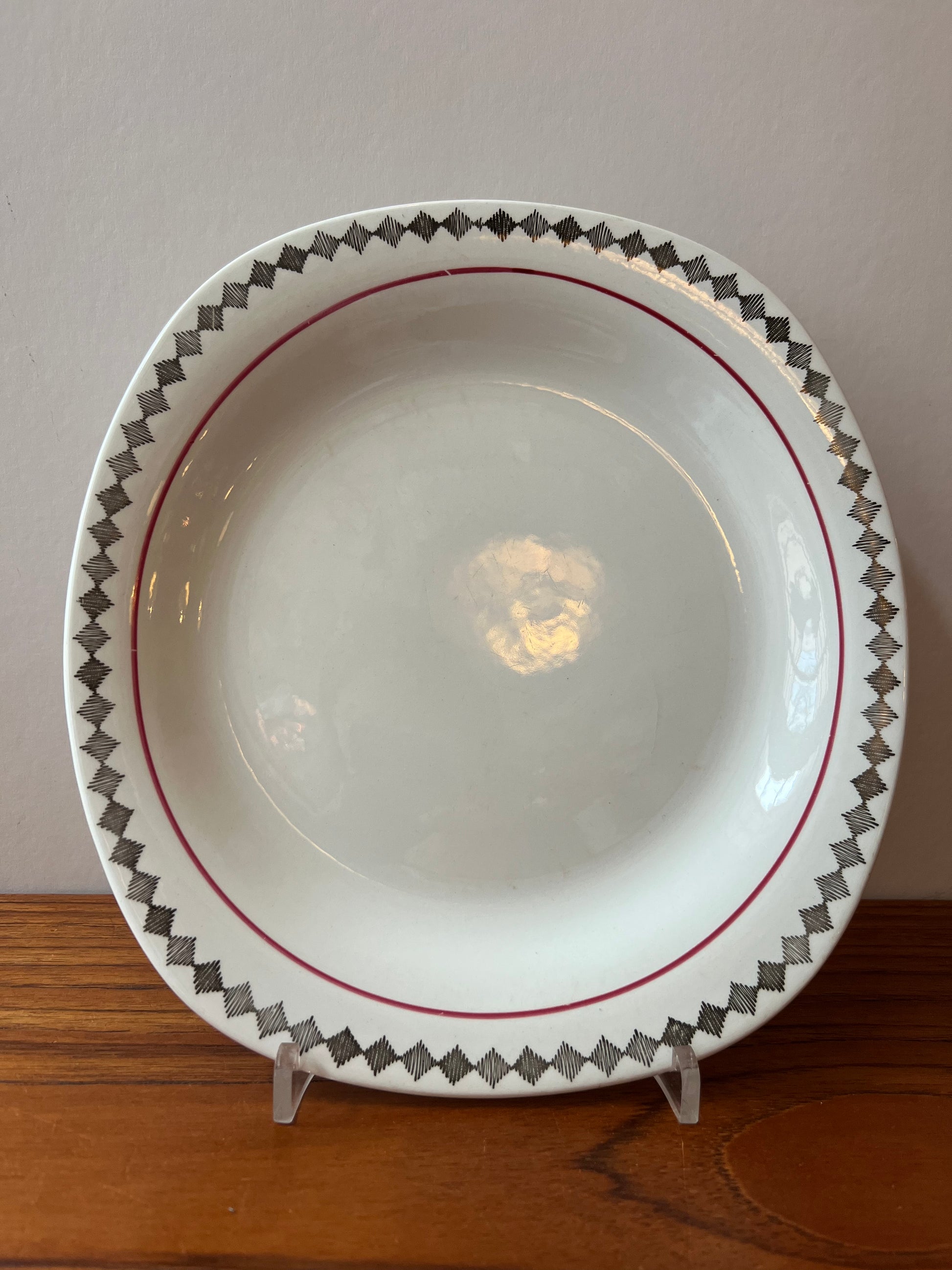 Mattallrik Red Top av Marianne Westman för Rörstrand. Storlek 25cm x 23,5cm. Tillverkningsår 1956-1967. Åldersrelaterat slitage.
