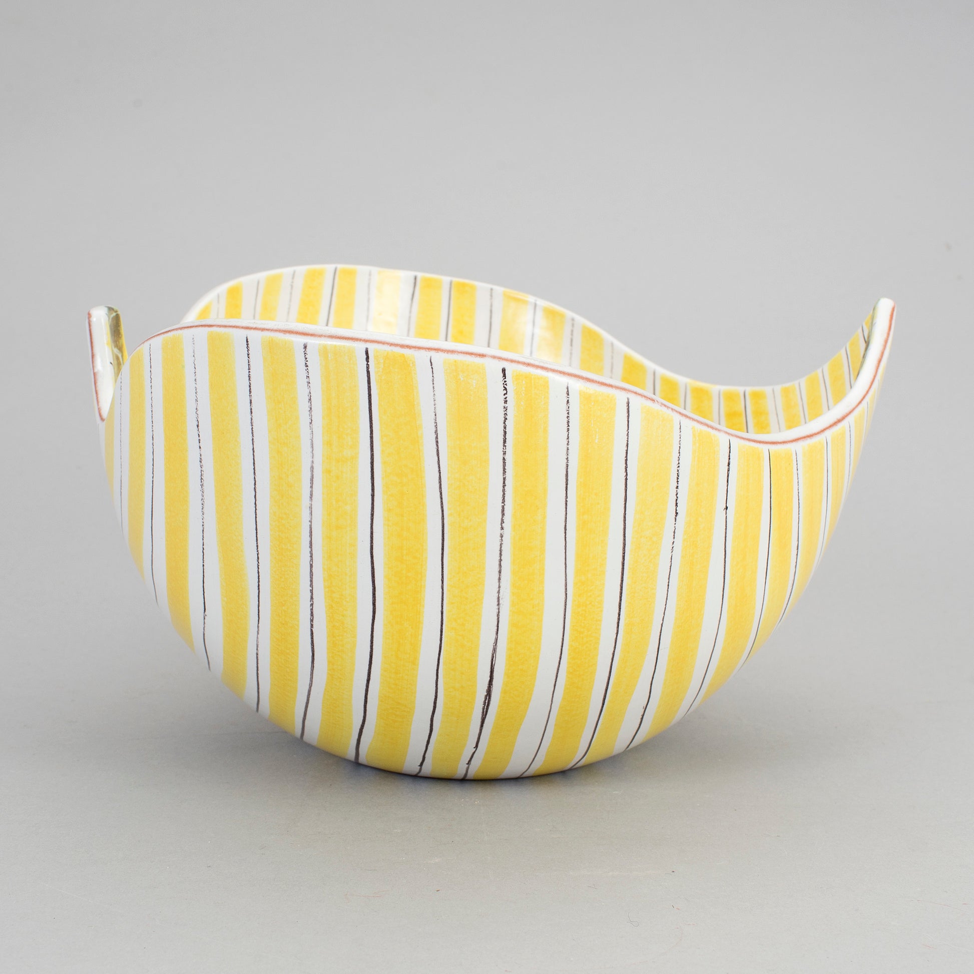 Stig Lindberg fayance bowl for Gustavsberg. H: 14cm/5,5" and 24cm/9,4″ X 25,5cm/10″. Signed with the ”Studio Hand”