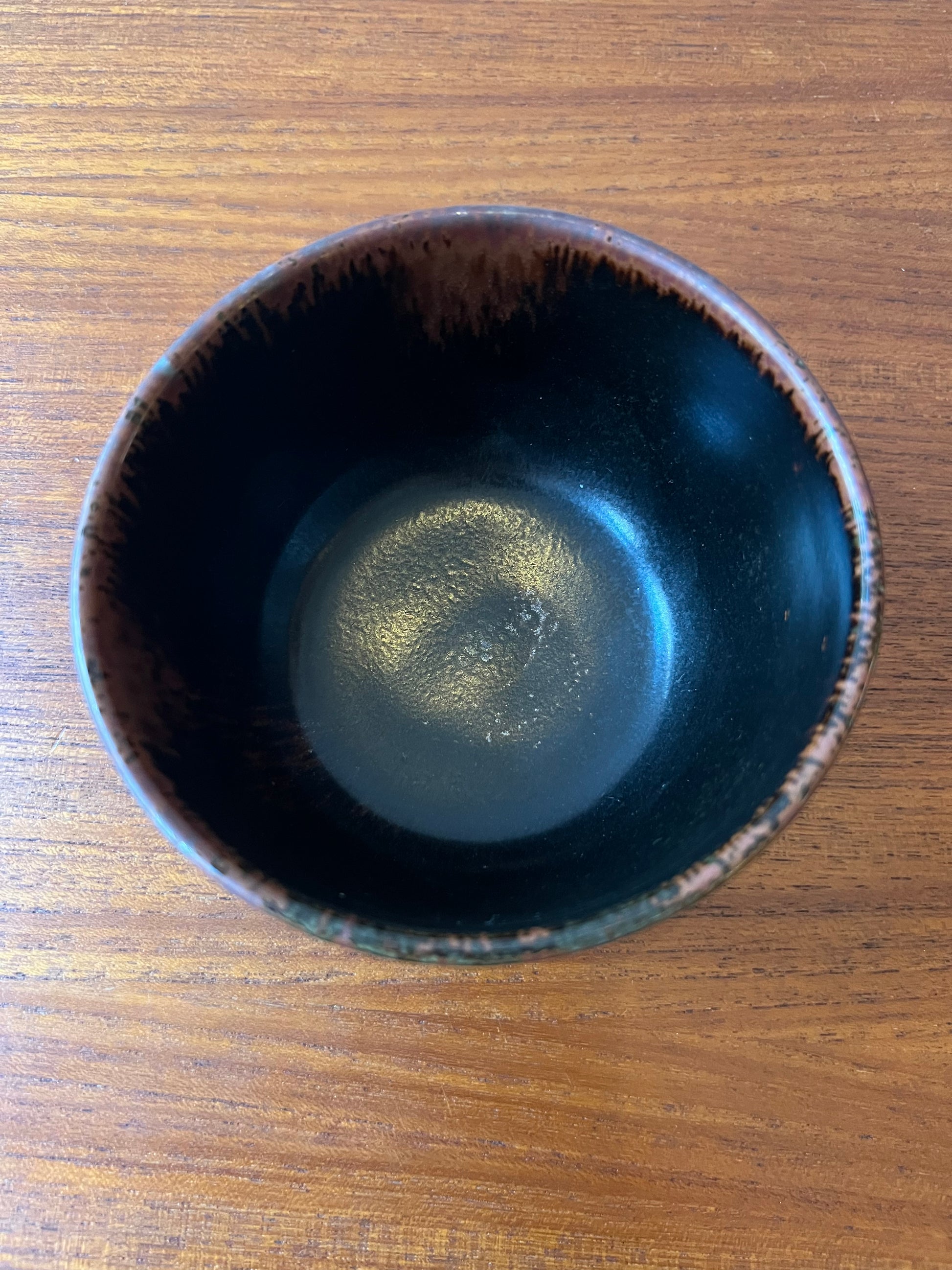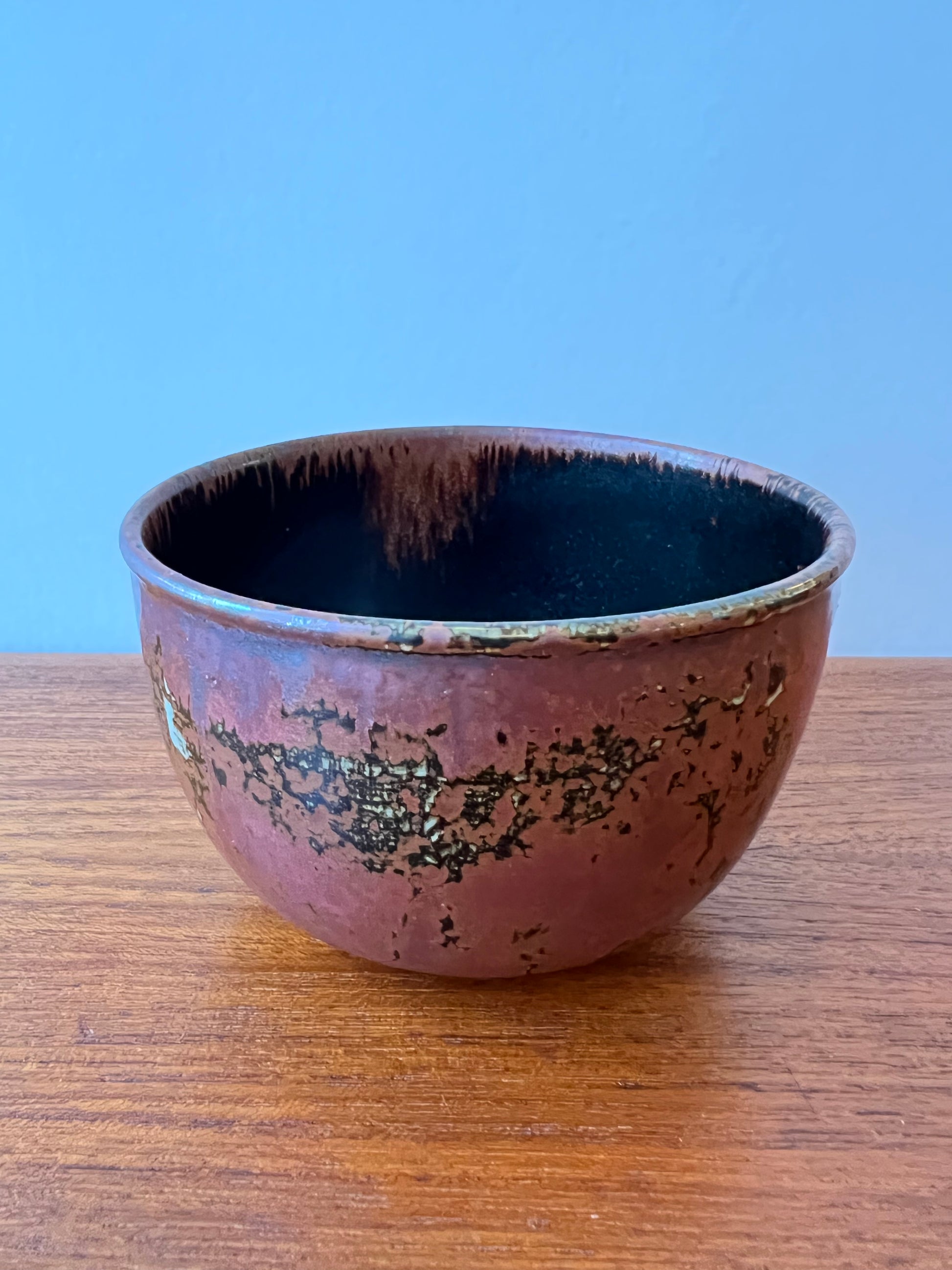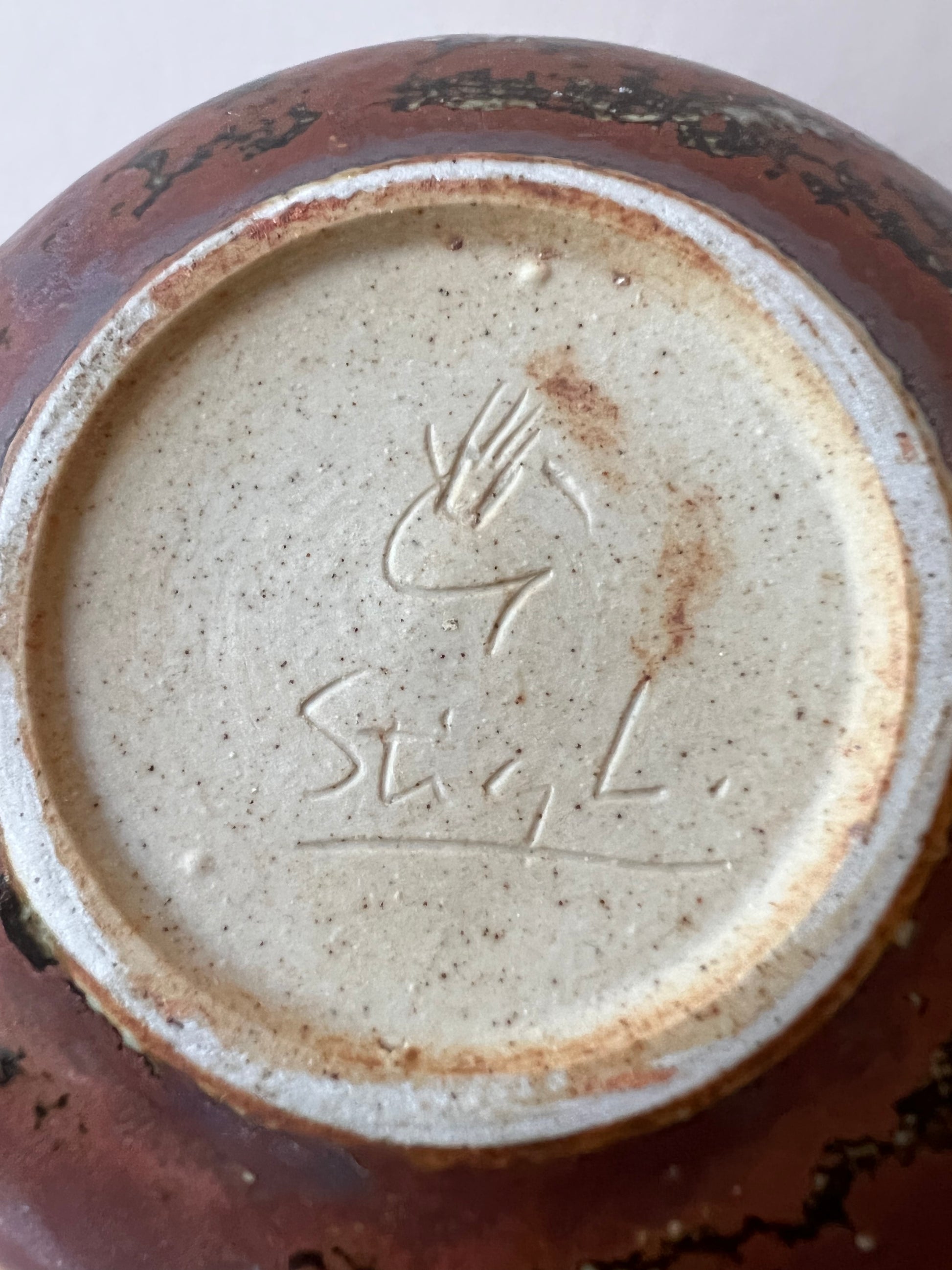 Stoneware bowl by Stig Lindberg for Gustavsberg. Height 7,5cm/3″ and diameter 12cm/4,7". Signed Stig L and the Studio Hand.
