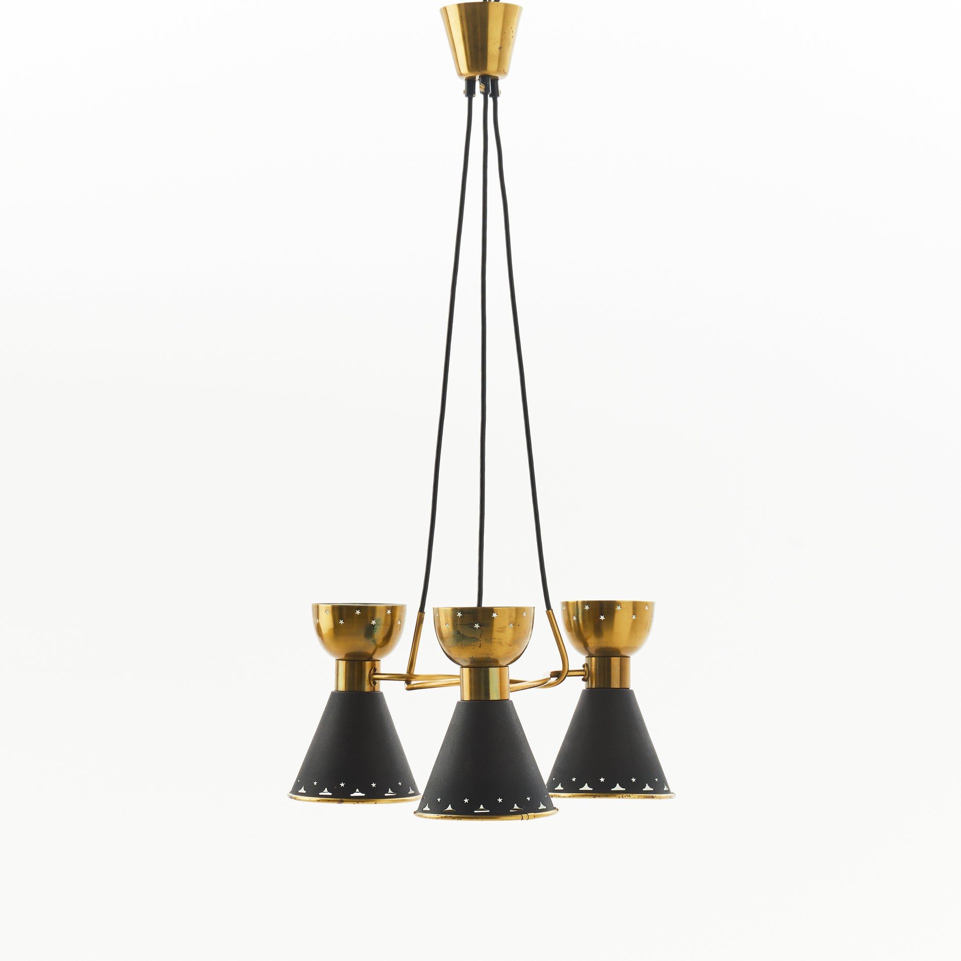 Taklampa, trearmad i bl a mässing, 1950-60-tal. Diameter 50cm.