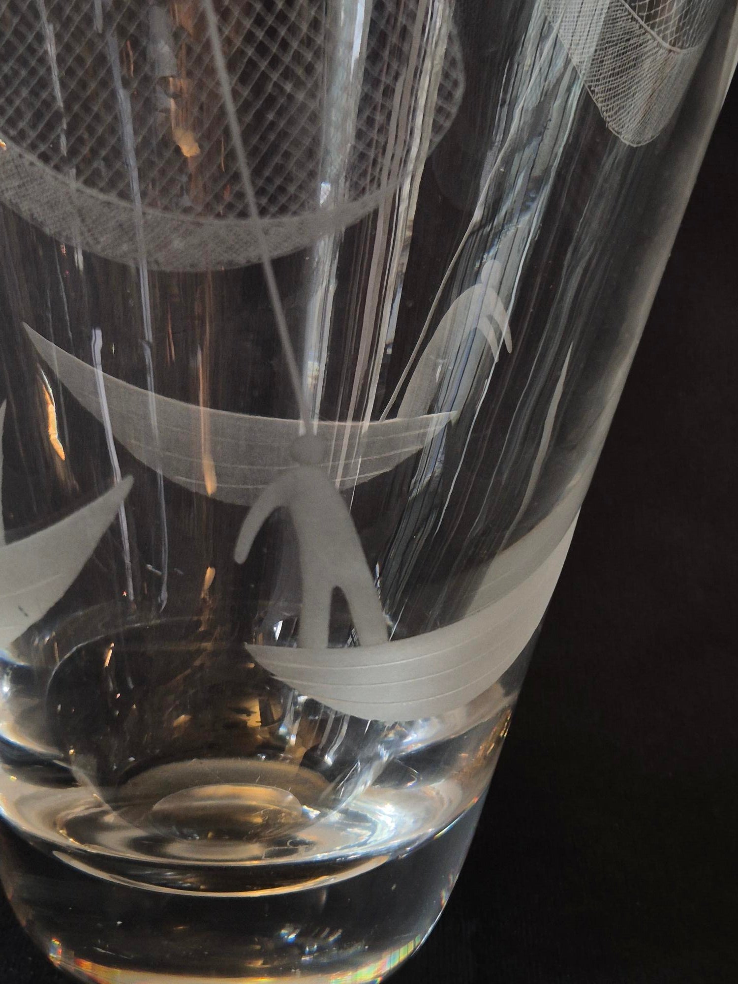 Graverad vas av Vicke Lindstrand för Kosta, ”Norsfiske”. 1950-tal. Signerad LG 134. 25 cm hög.