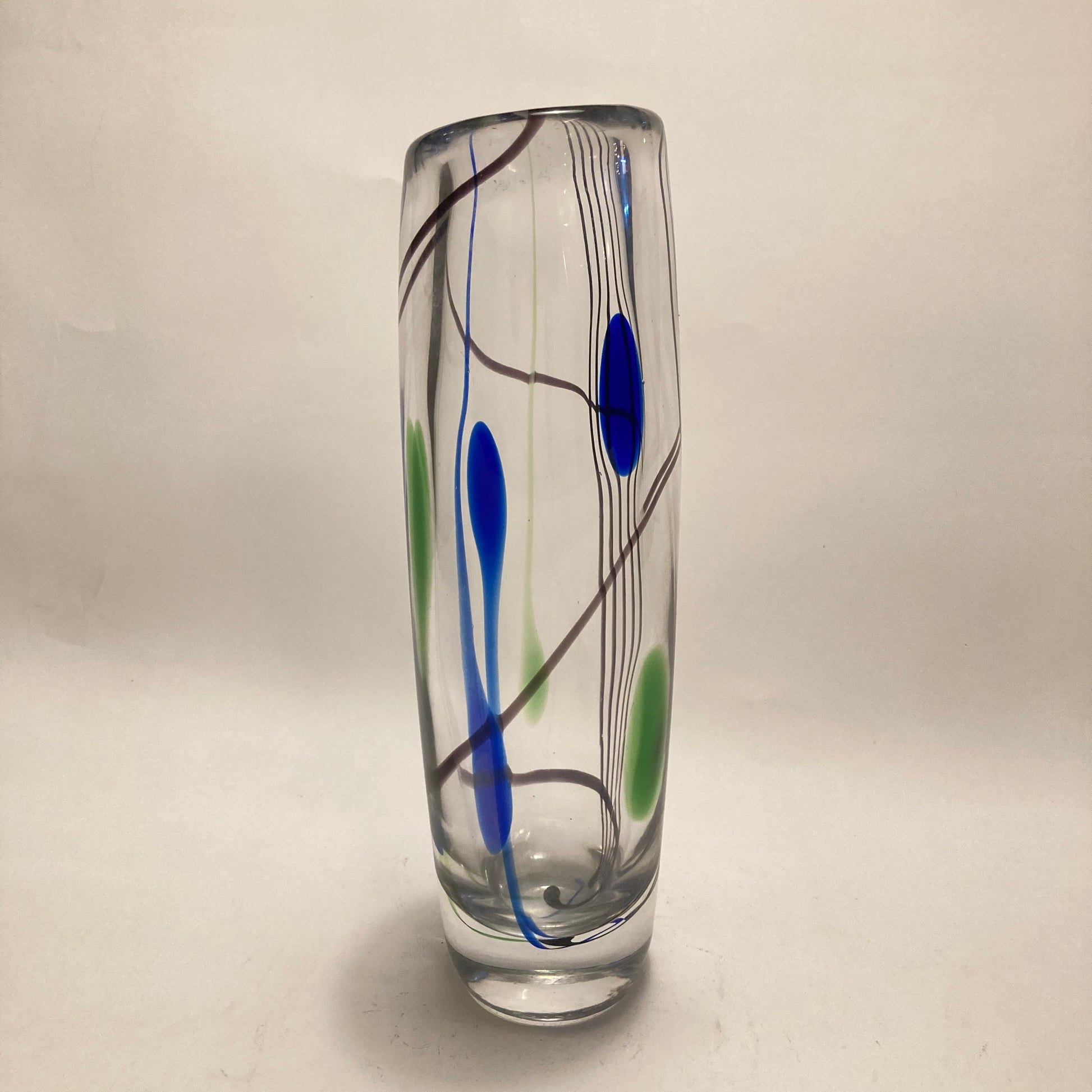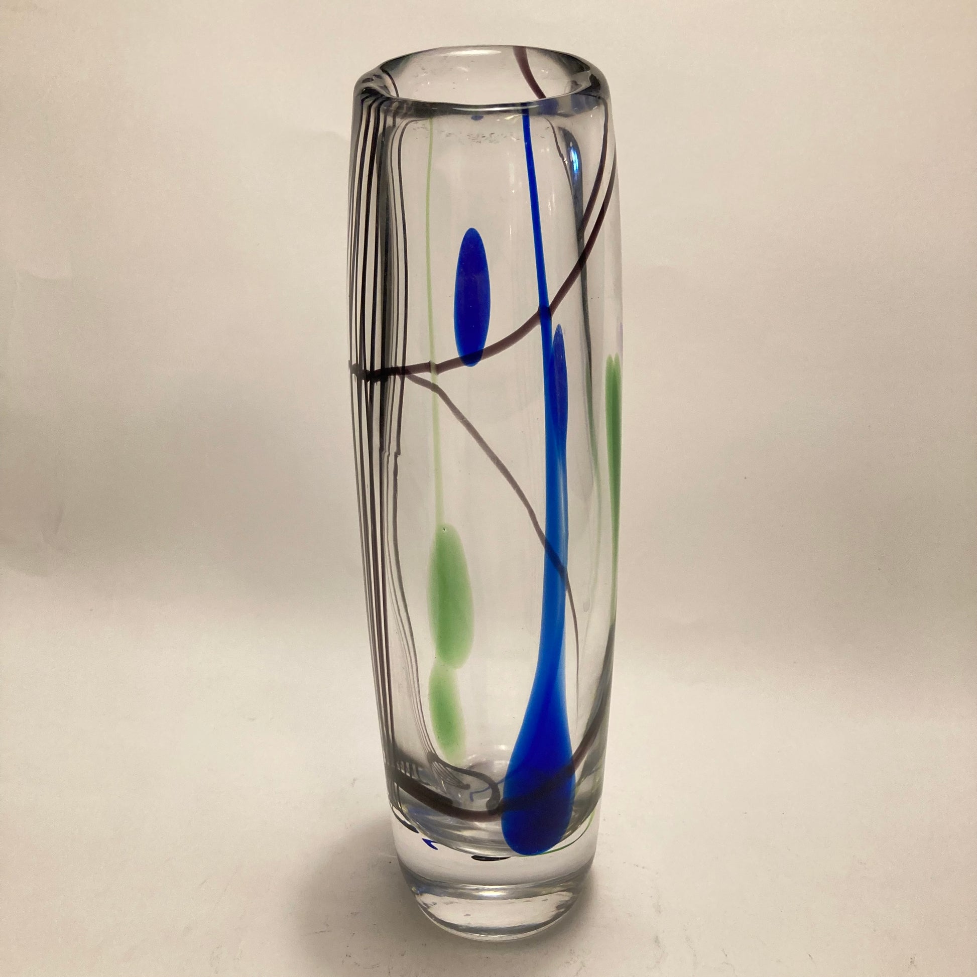 Vas av Vicke Lindstrand för Kosta med flerfärgad dekor, "Abstracta". Signerad KOSTA LU 2036. 31cm hög.